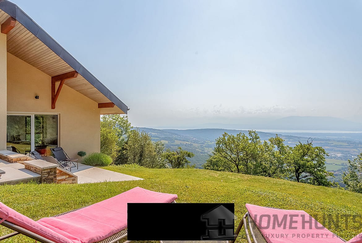 Discover this extraordinary architect-designed house of 270 m2, offering a panoramic view of the majestic Mont Blanc and the picturesque Lake Geneva. A real haven of peace nestled in the heart of a breathtaking landscape.