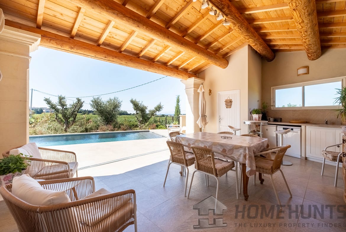 Outside, you will enjoy a large landscaped garden, a superb swimming pool with unobstructed views of the Dentelles de Montmirail, as well as several shaded terraces, perfect for summer meals.