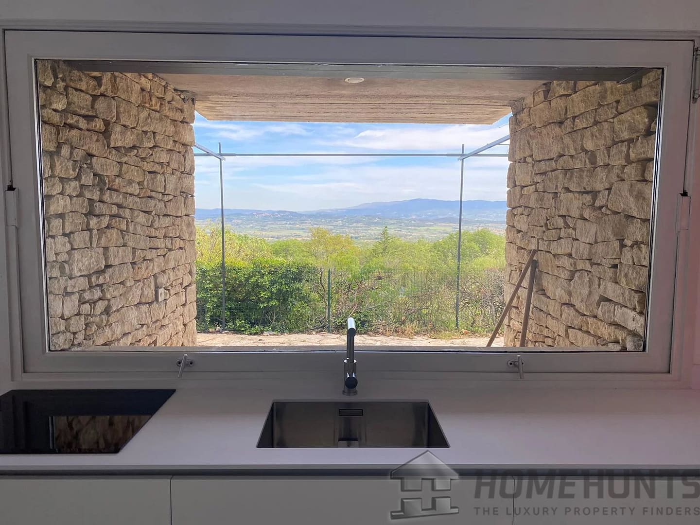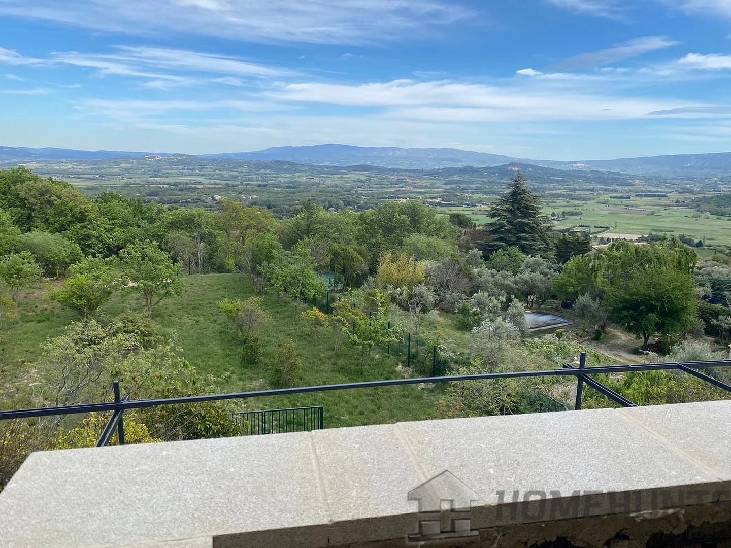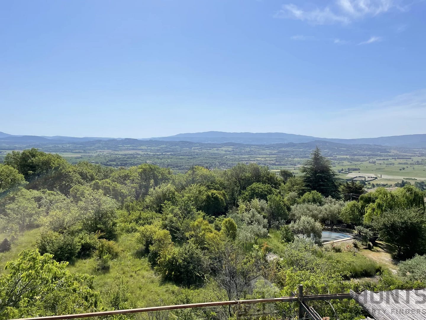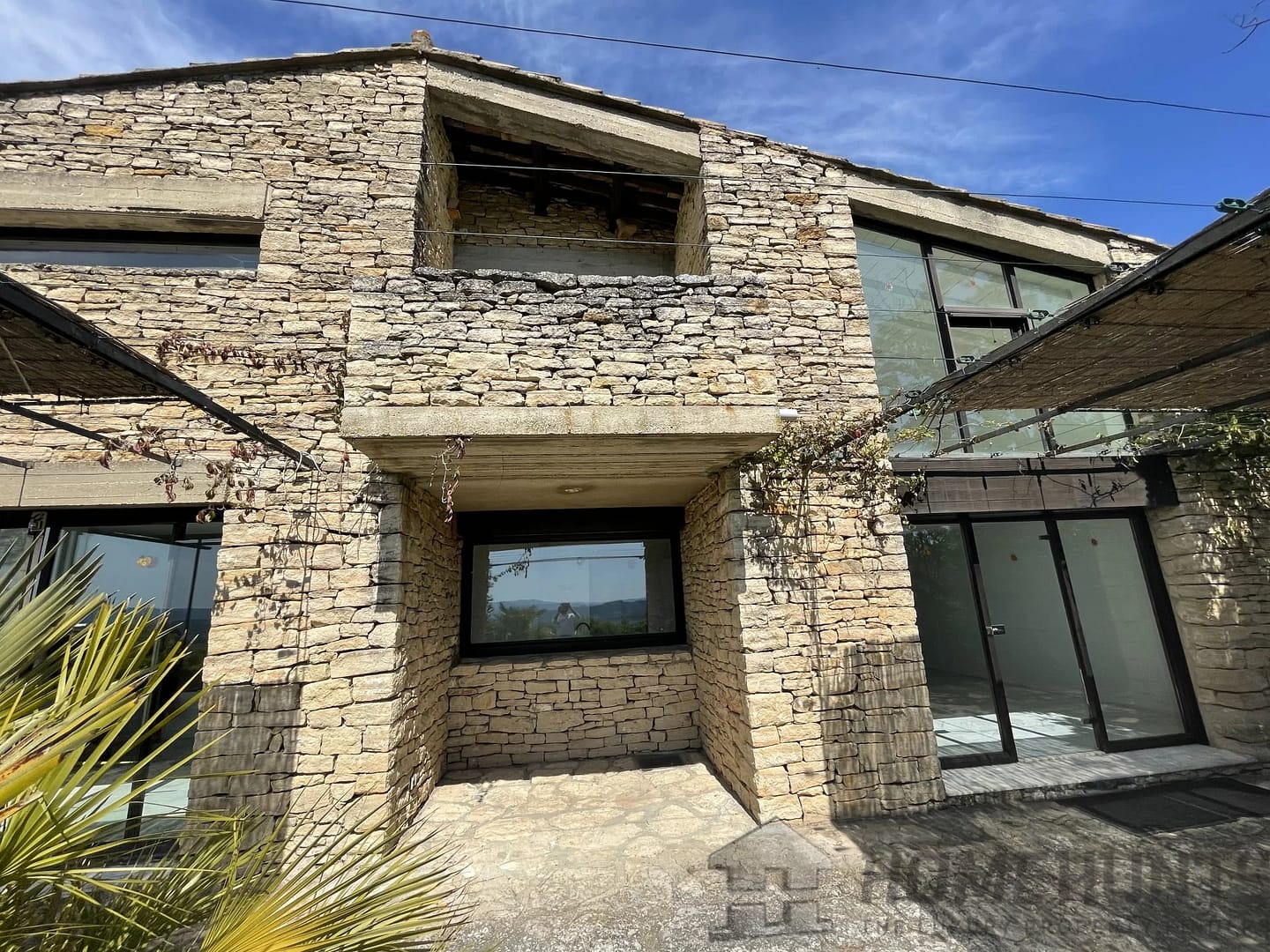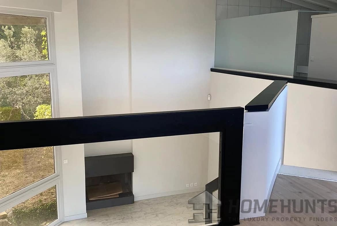 This contemporary house on a mezzanine level offers exceptional views of Gordes, the valley, and neighboring villages from its privileged location on a rocky outcrop.