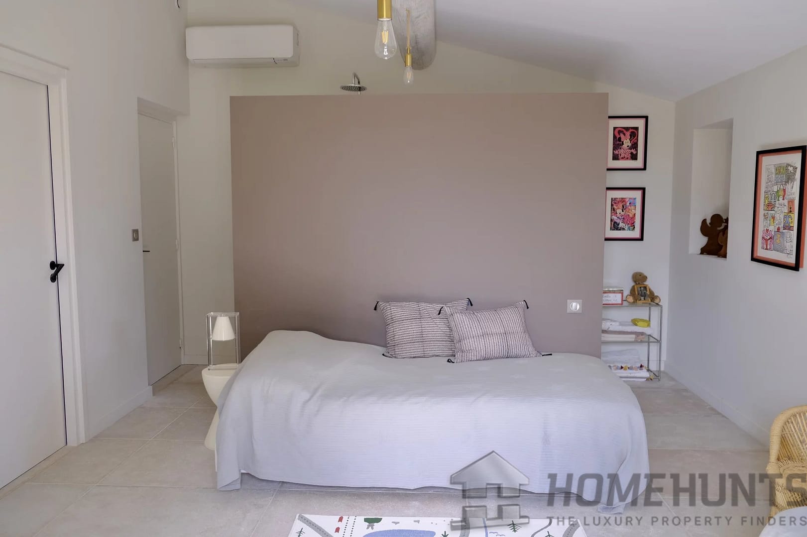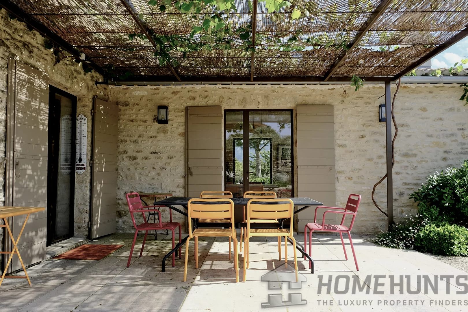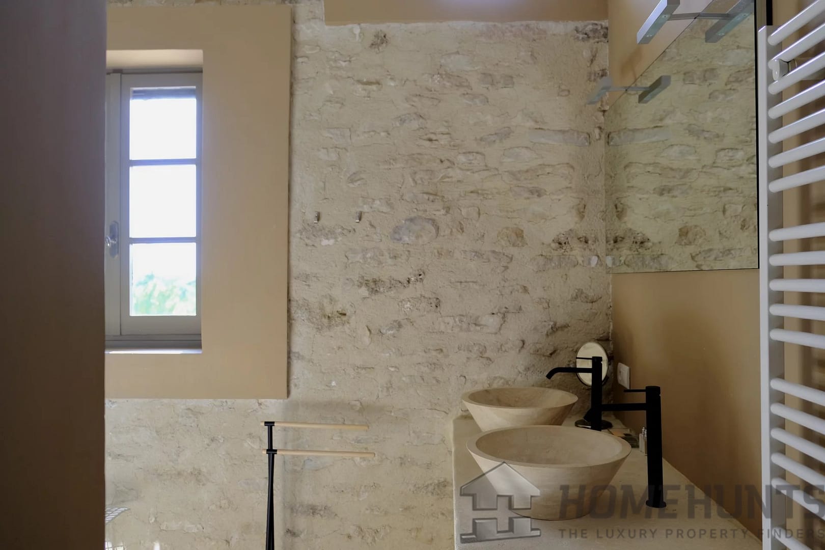 From the east courtyard, the guesthouse offers two additional bedrooms, each with its own en-suite bathroom.