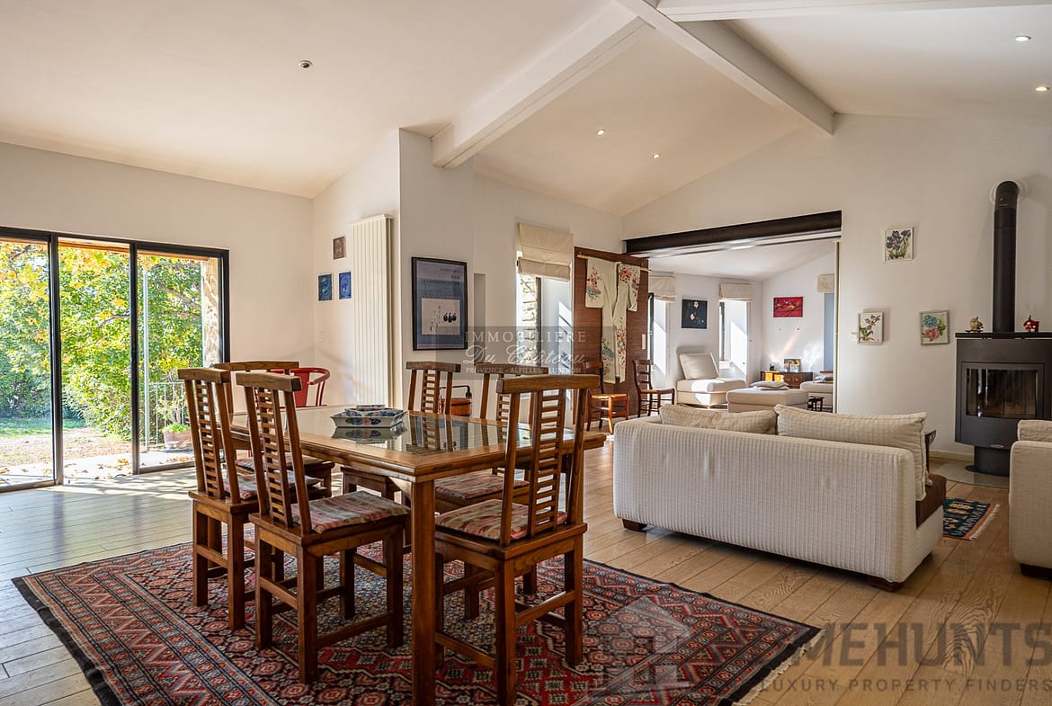 Set in a quiet and preserved environment near the heart of the charming village of Gordes, this stone architect-designed residence of approximately 250 m2, accompanied by a separate stone guesthouse, blends Provençal charm with contemporary comfort. The property offers generous, light-filled living spaces opening onto a landscaped garden with panoramic views of the Alpilles.