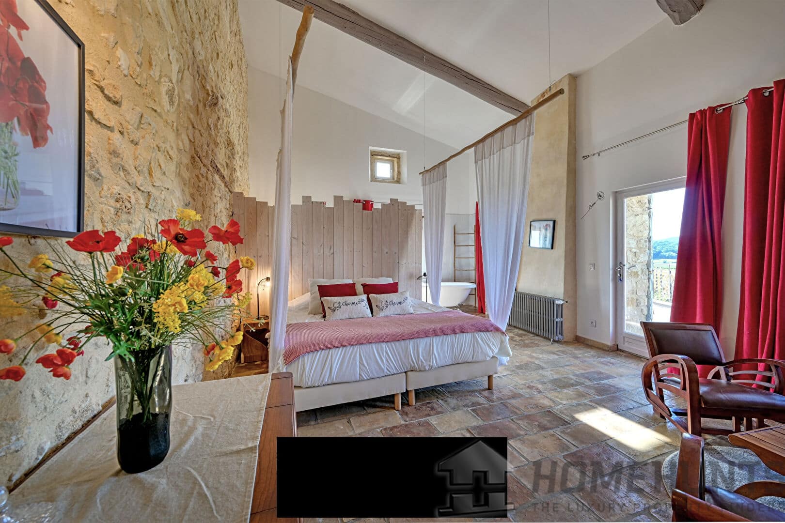 Located in a charming village less than 10 minutes from Goudargues, this exceptional 490 m2 property with a unique atypical character is made up of two farmhouses on a vast landscaped garden of 5,000 m2.