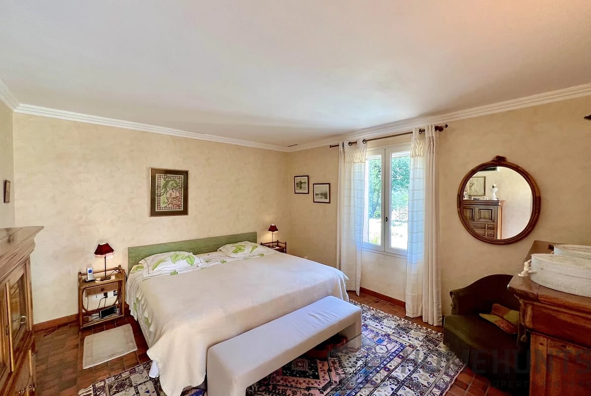 The closed ground of 6391 m2 is landscaped around the house and planted with Provencal species for the rest. A patio, a terrace with gazebo and an infinity pool adorn the house.