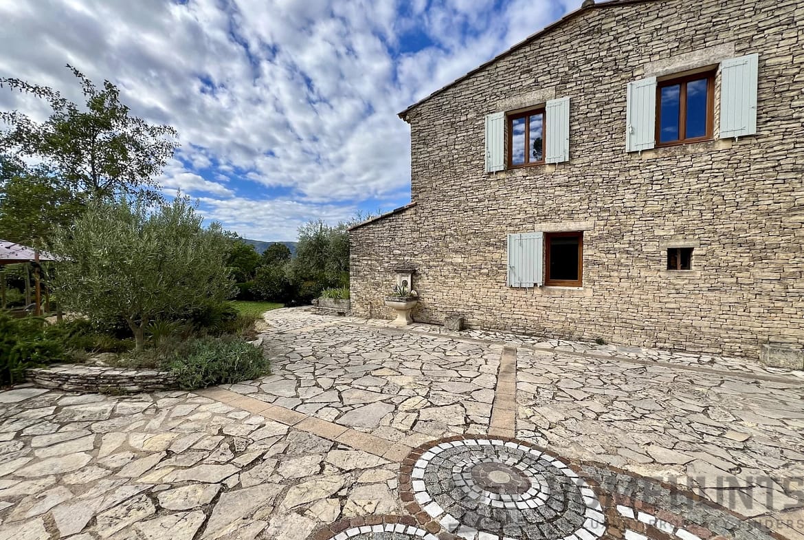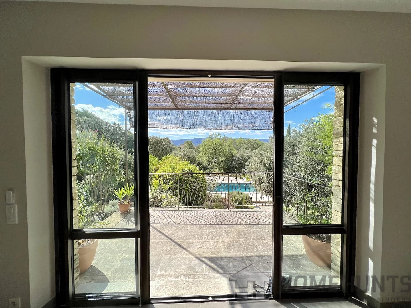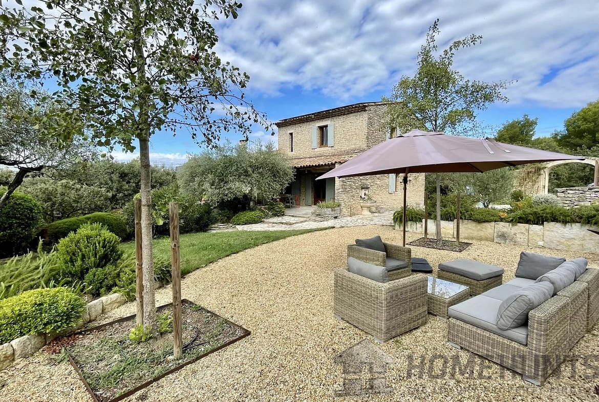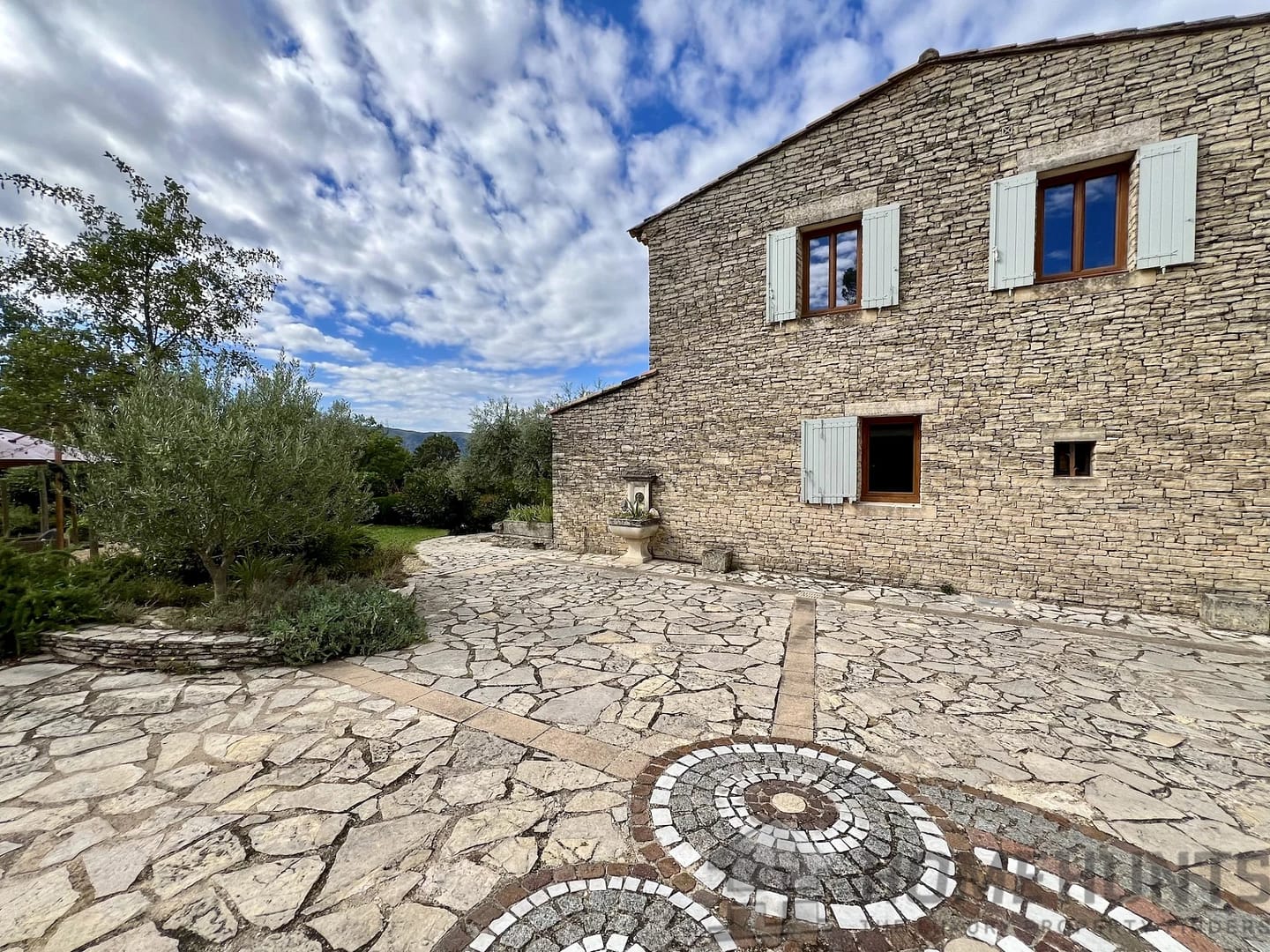 In the countryside of the village of Goult, enjoying a beautiful view of the Luberon and the Alpilles, charming stone house with a built surface area of approximately 250 m2 plus workshop and garage.