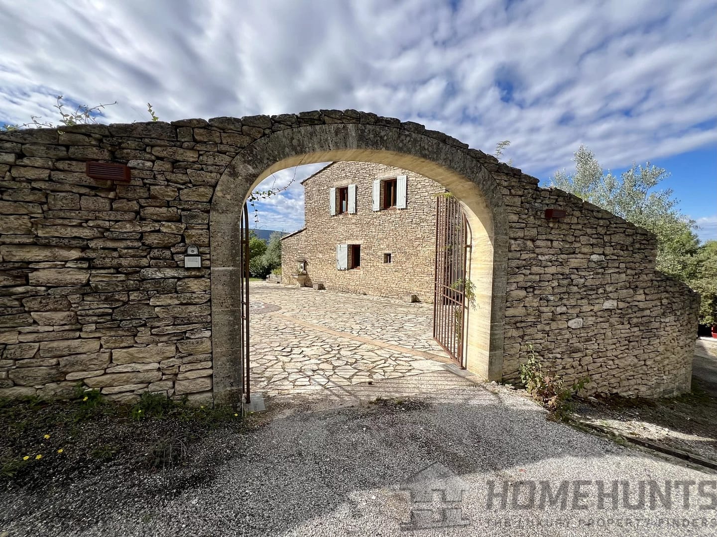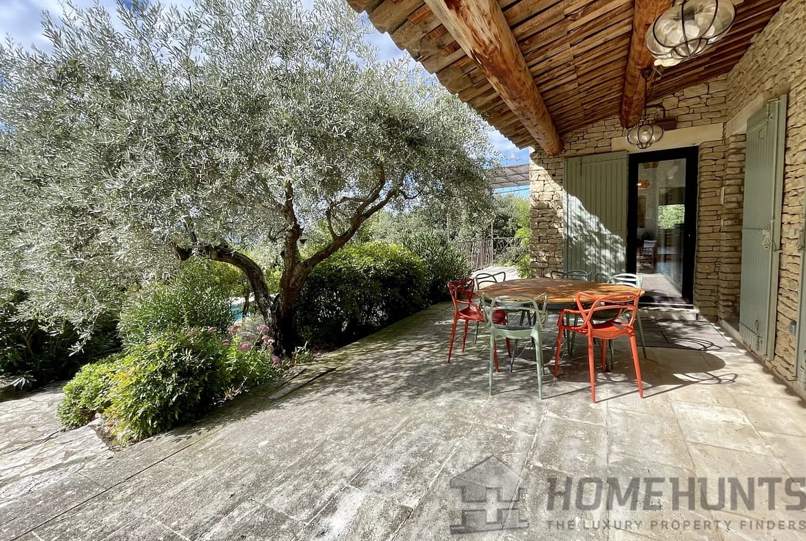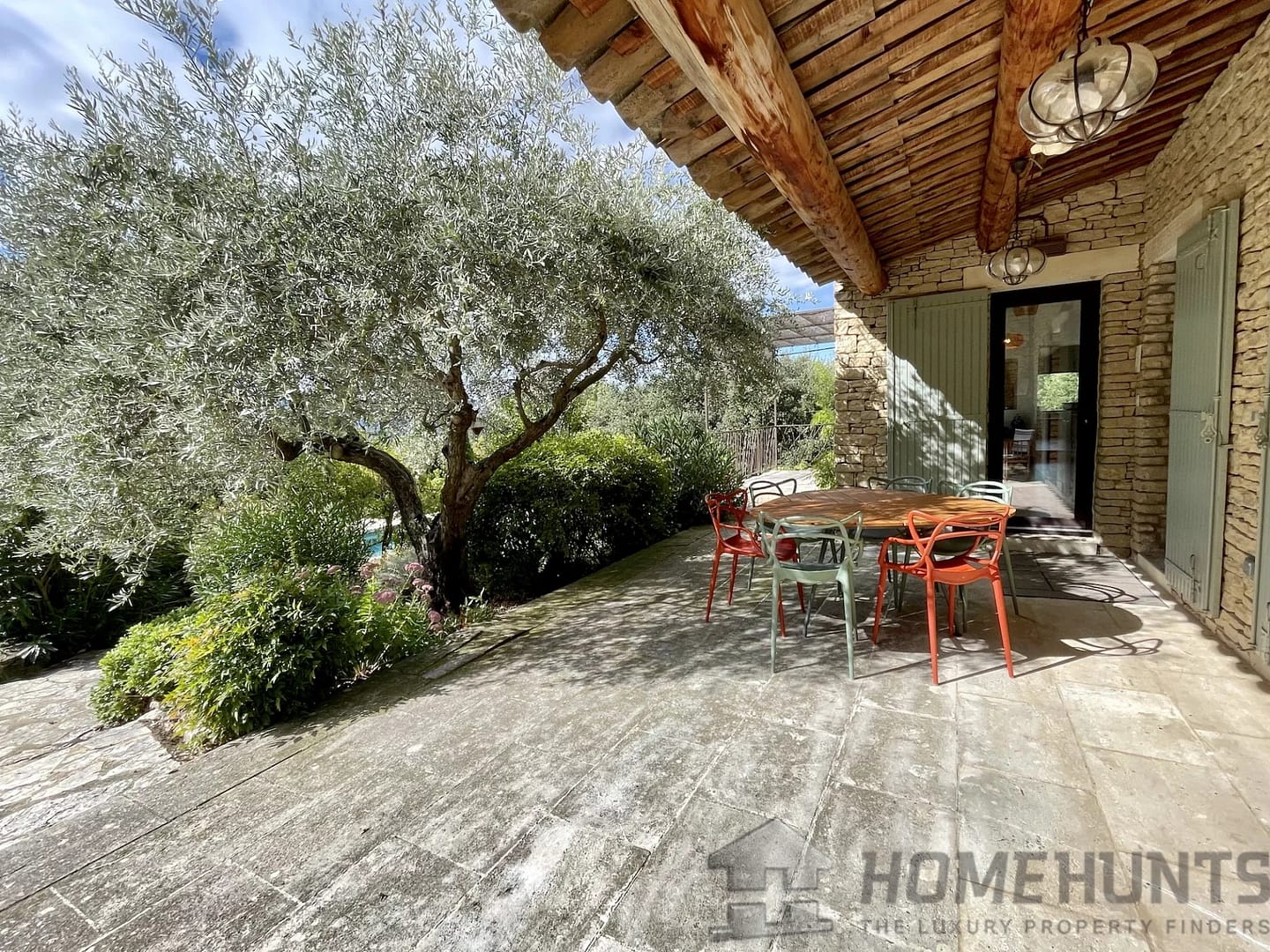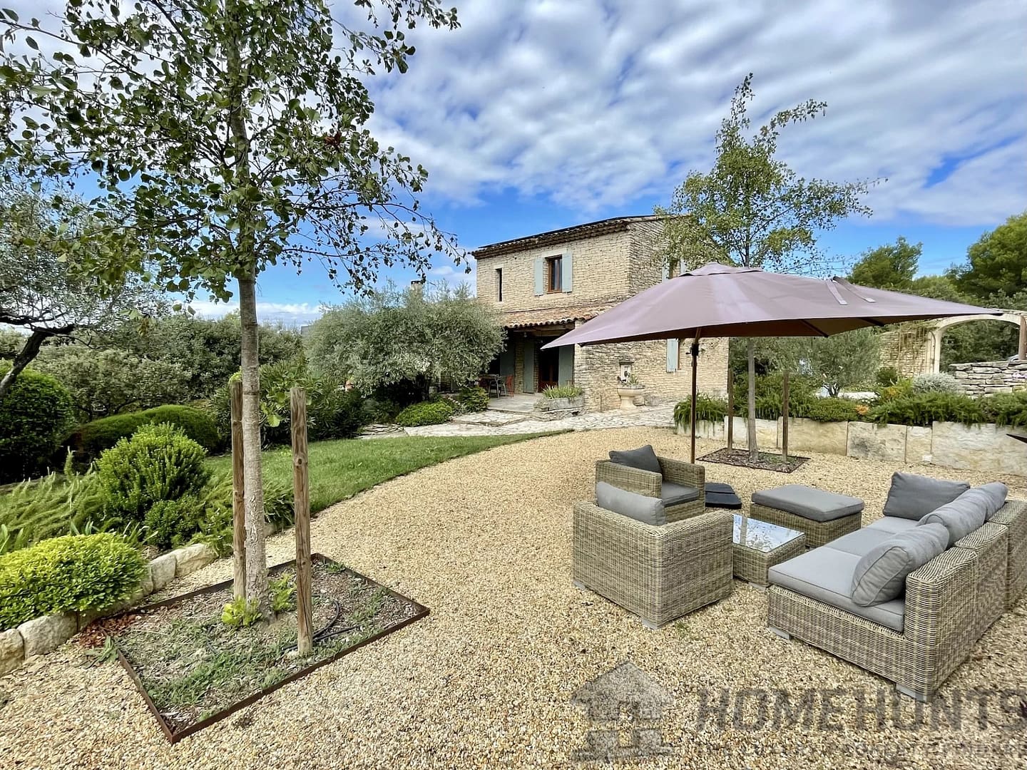In the countryside of the village of Goult, enjoying a beautiful view of the Luberon and the Alpilles, charming stone house with a built surface area of approximately 250 m2 plus workshop and garage.