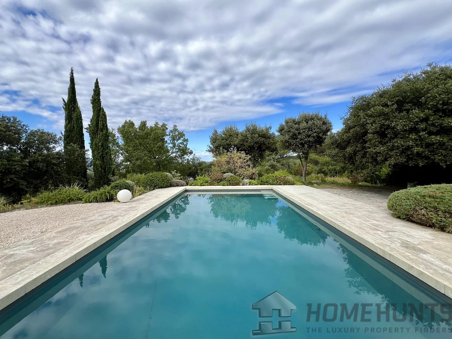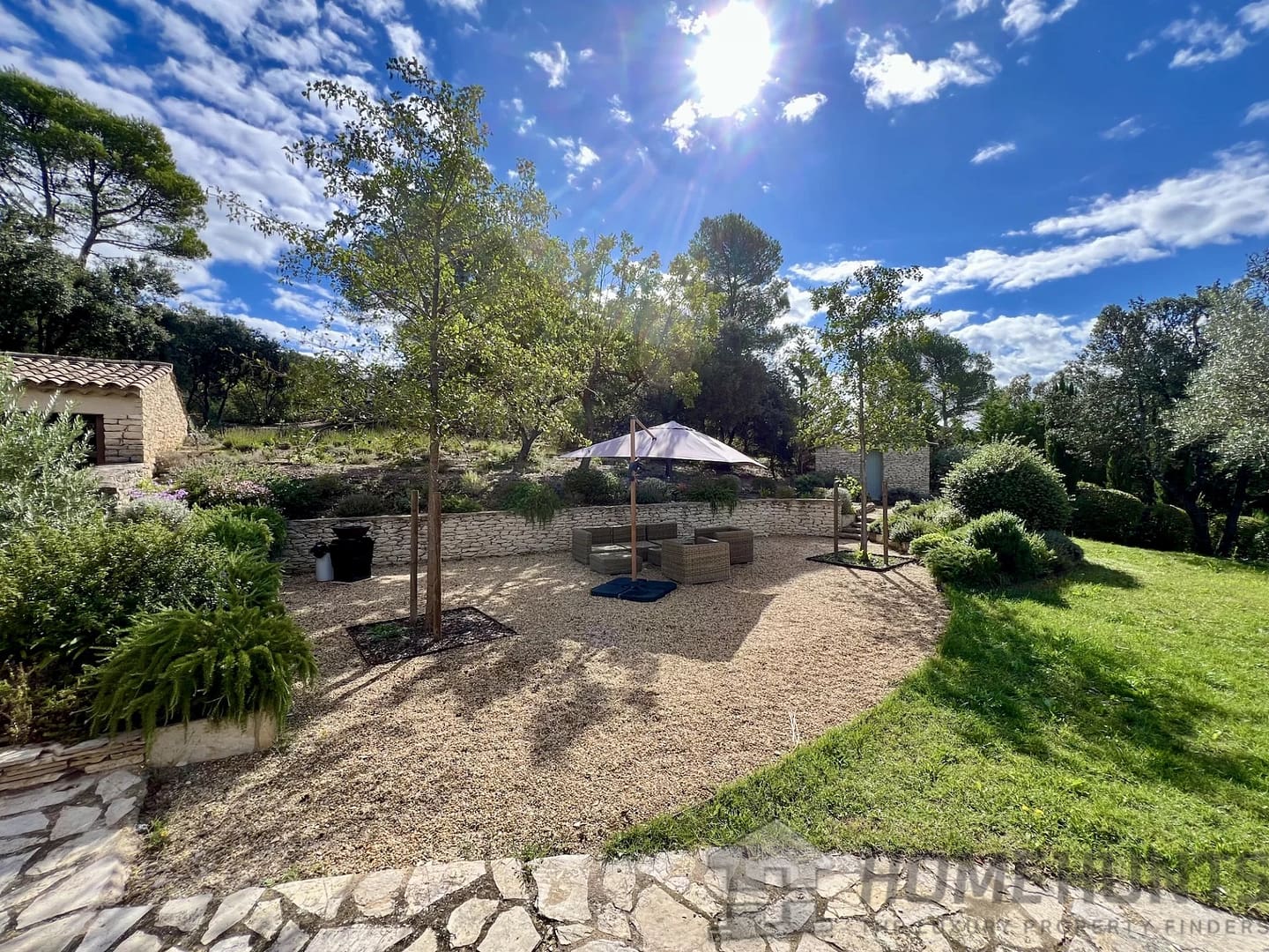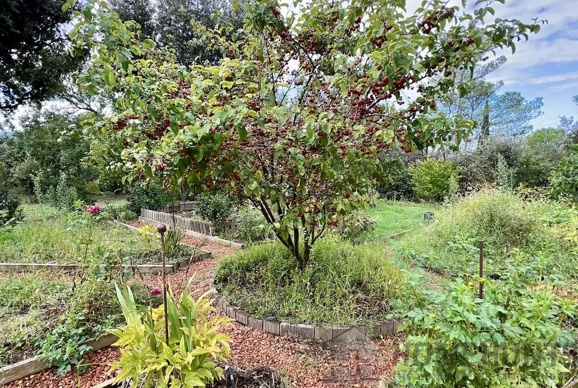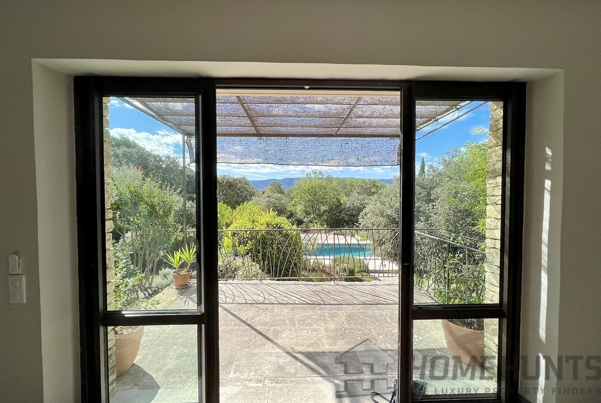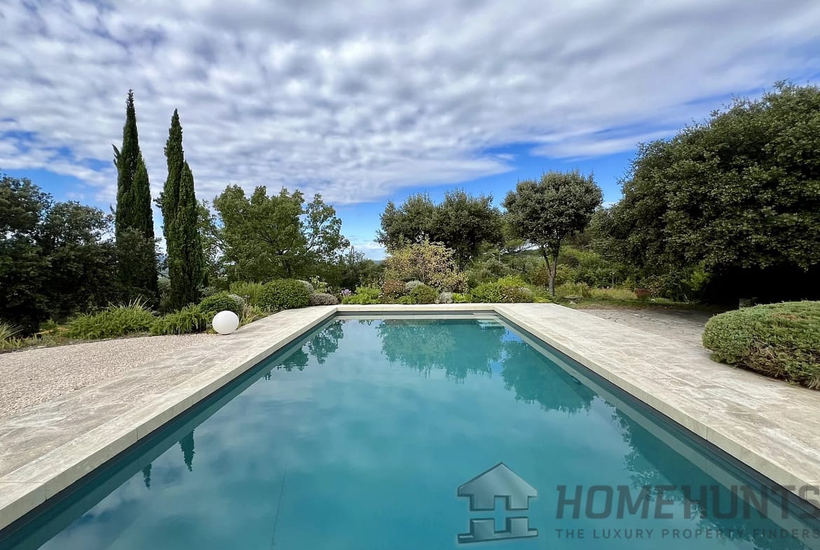 The gently sloping land of 9,280m2 is landscaped around the house and then planted with Provencal species. Several terraces, one of which is covered, another with an arbor and a swimming pool, decorate the house. A workshop/orangery, a garage for 2 cars and a small stone shed as well as a car port complete the package.