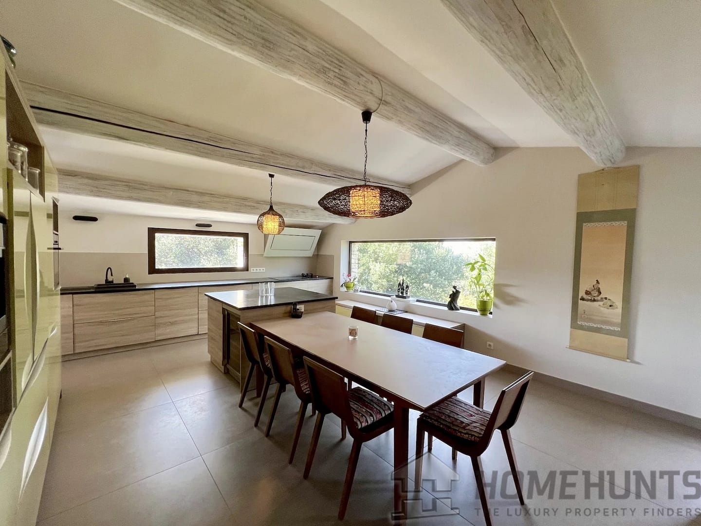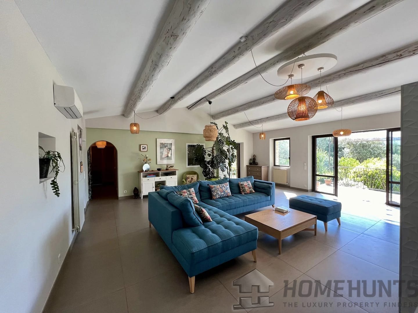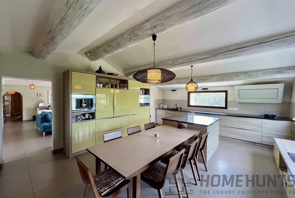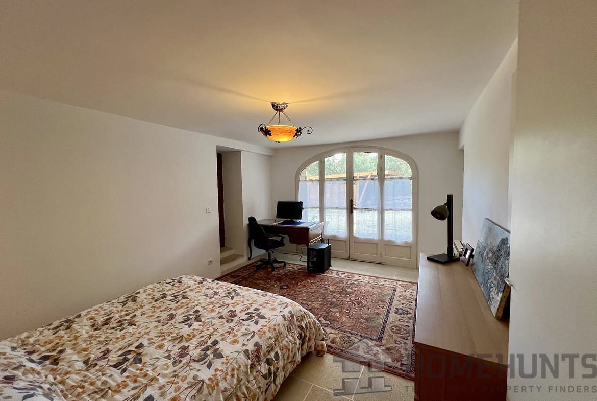 The gently sloping land of 9,280m2 is landscaped around the house and then planted with Provencal species. Several terraces, one of which is covered, another with an arbor and a swimming pool, decorate the house. A workshop/orangery, a garage for 2 cars and a small stone shed as well as a car port complete the package.
