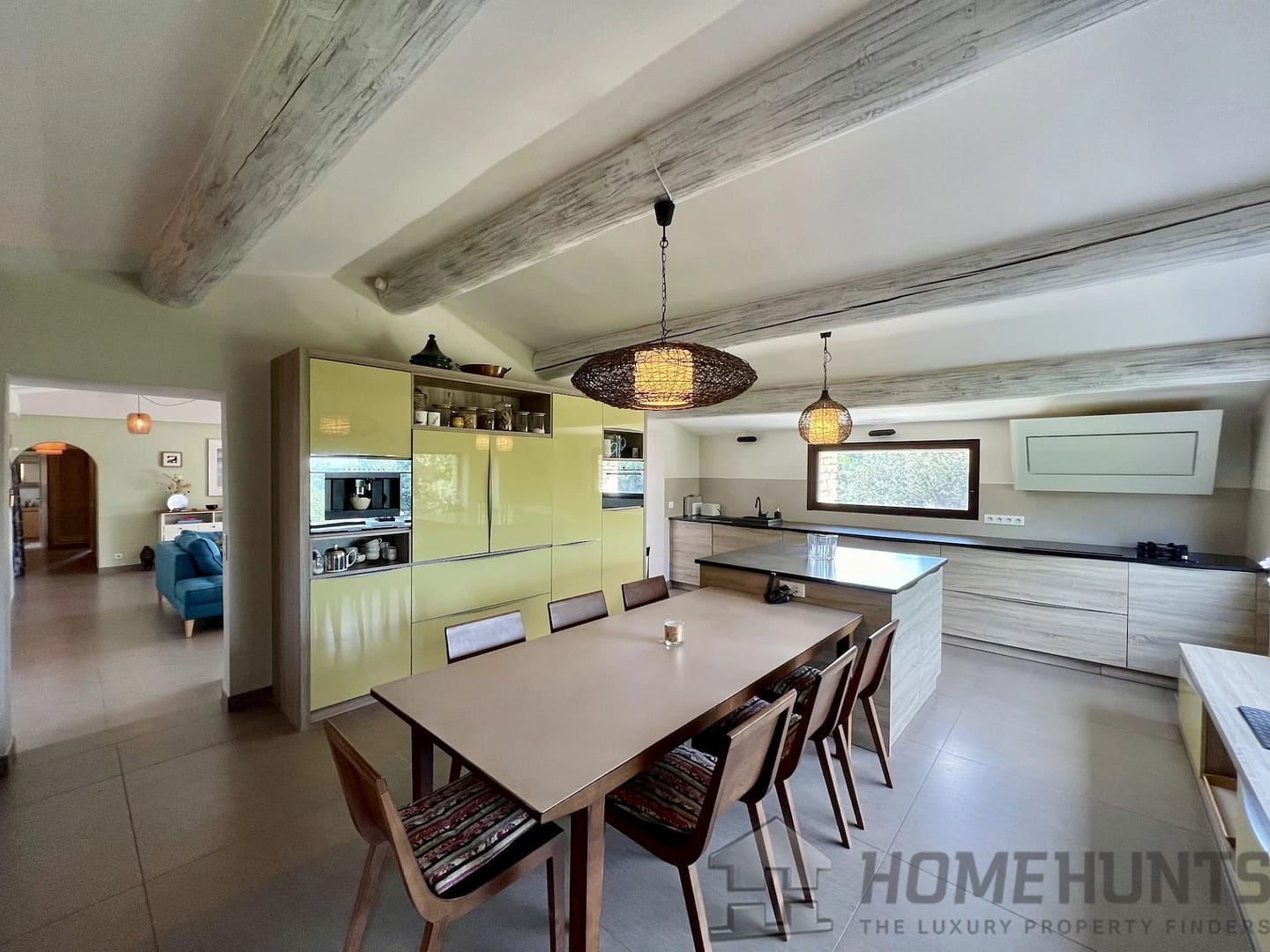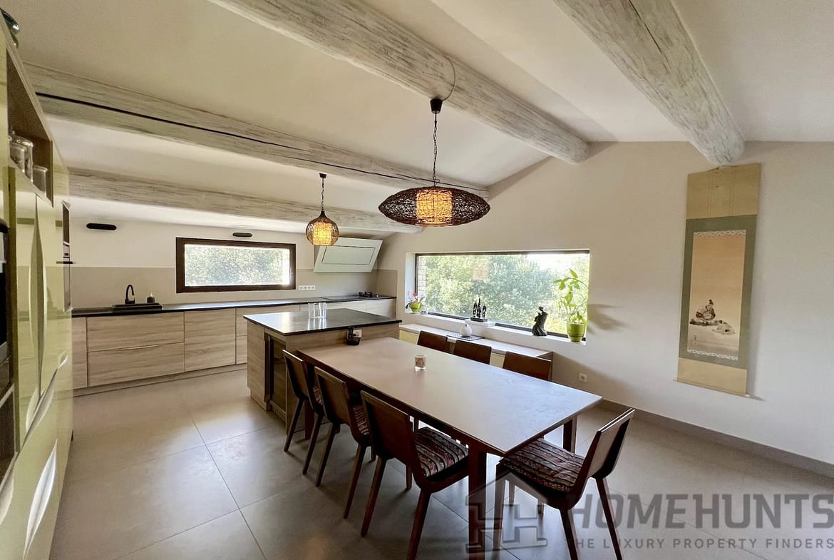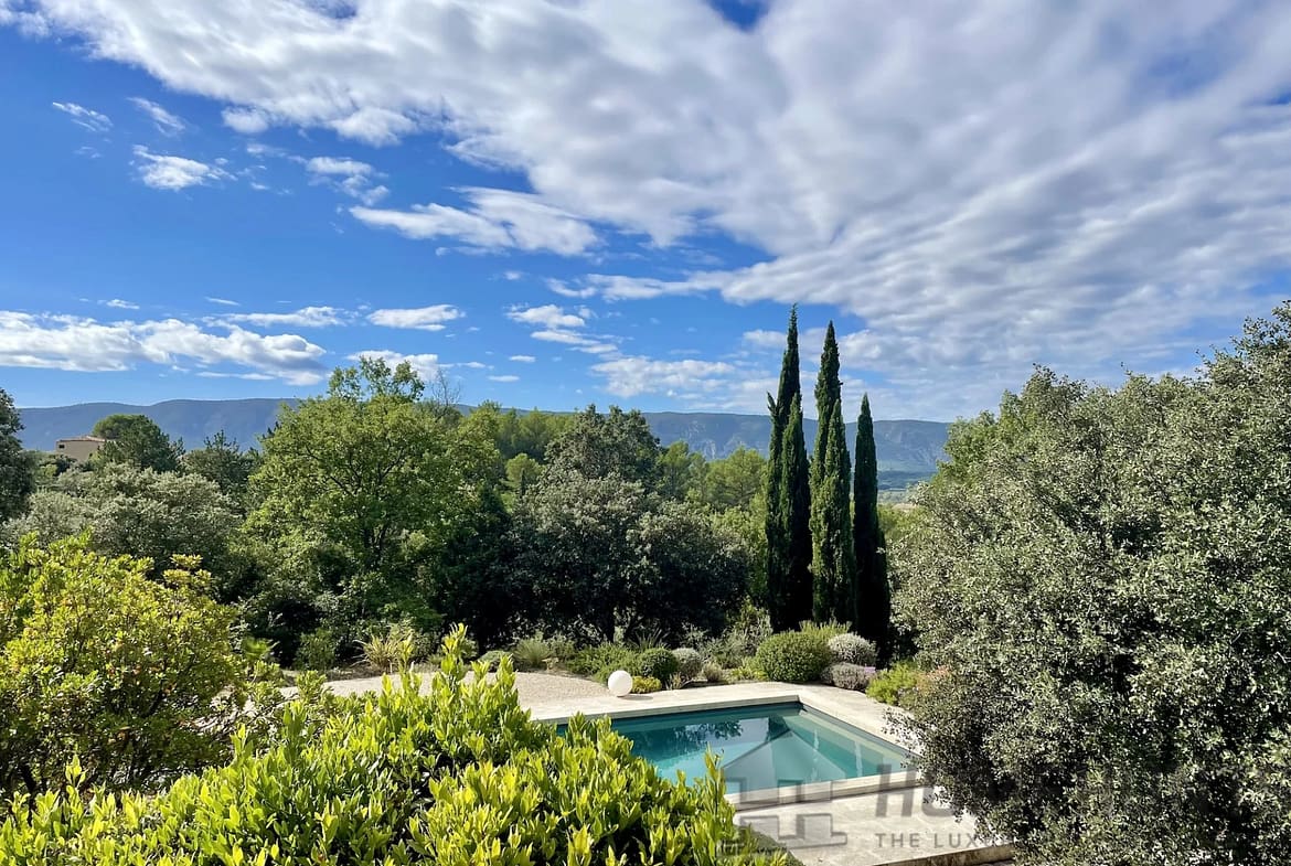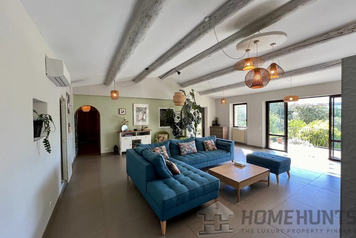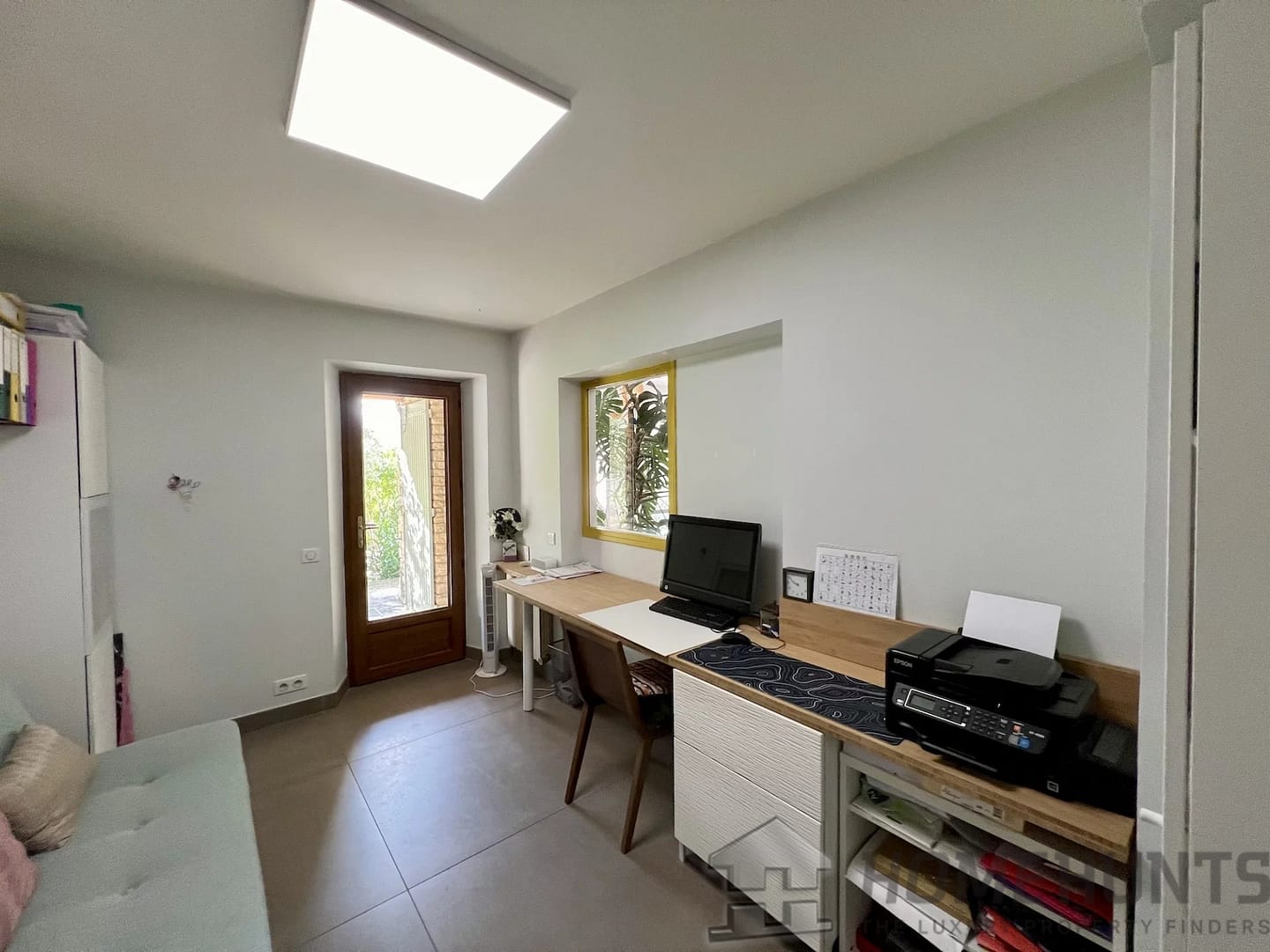 The gently sloping land of 9,280m2 is landscaped around the house and then planted with Provencal species. Several terraces, one of which is covered, another with an arbor and a swimming pool, decorate the house. A workshop/orangery, a garage for 2 cars and a small stone shed as well as a car port complete the package.