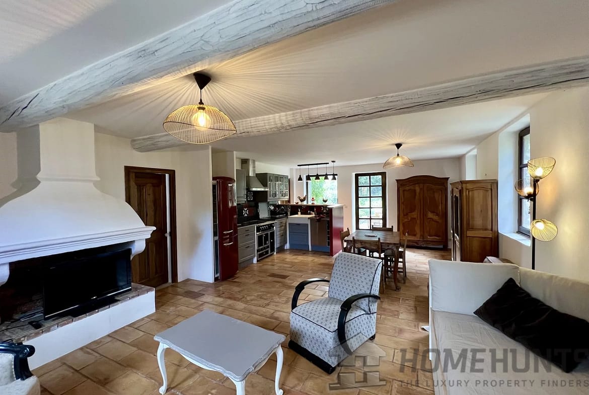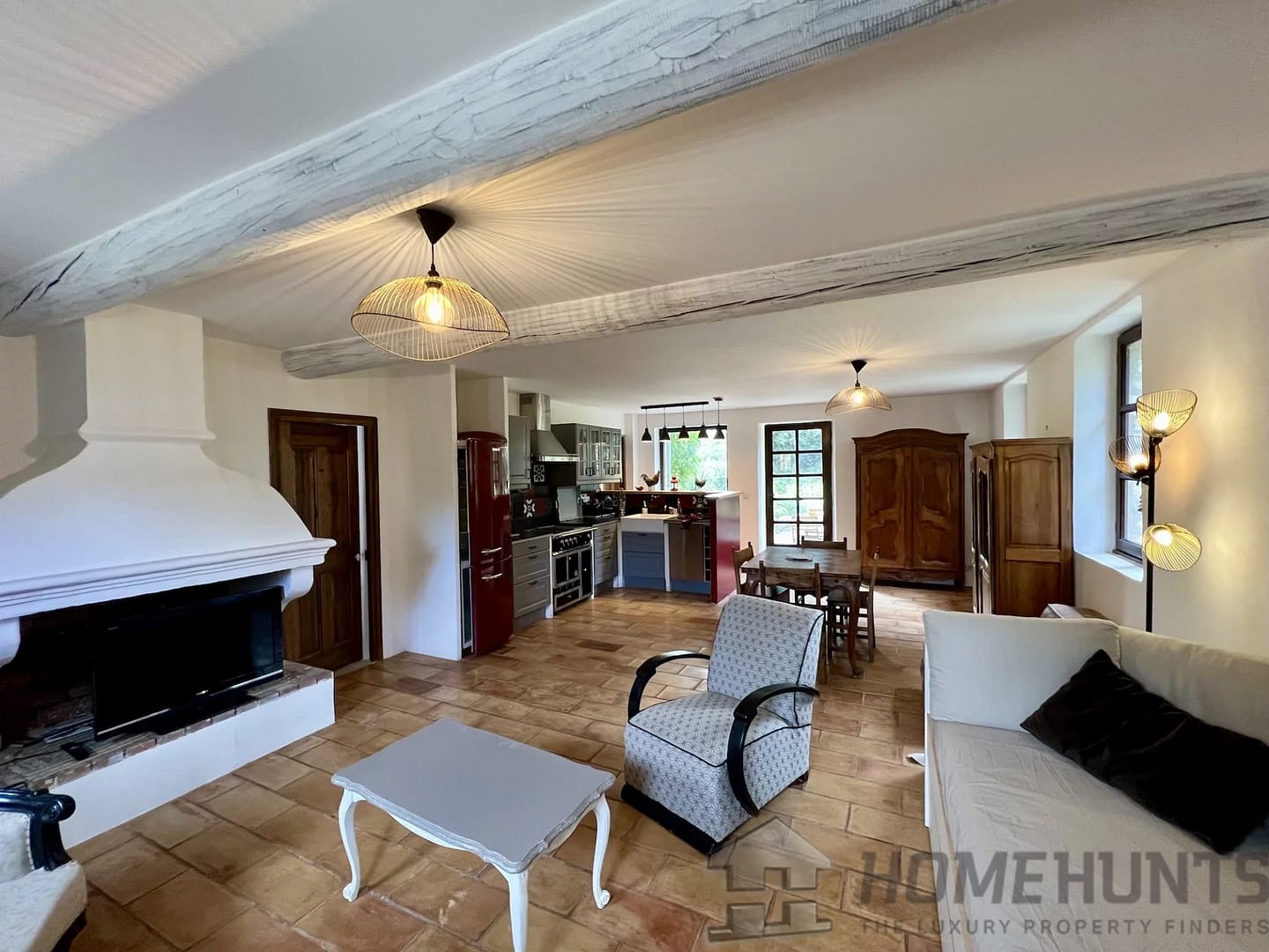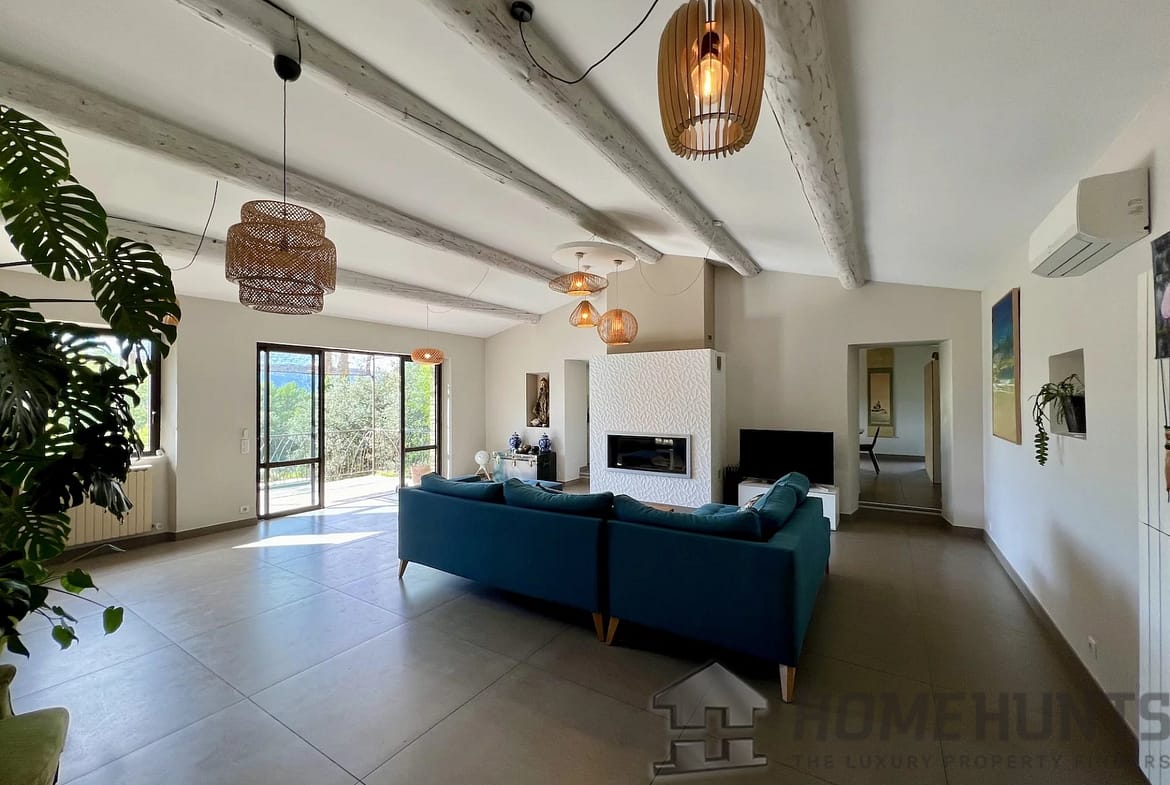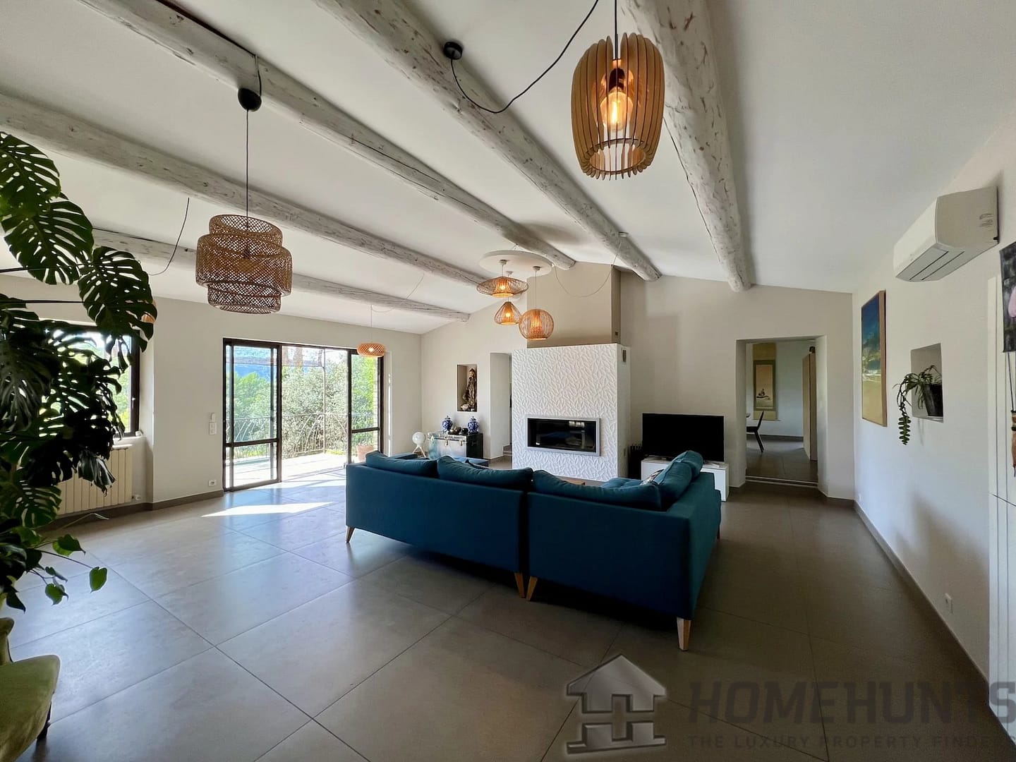 The gently sloping land of 9,280m2 is landscaped around the house and then planted with Provencal species. Several terraces, one of which is covered, another with an arbor and a swimming pool, decorate the house. A workshop/orangery, a garage for 2 cars and a small stone shed as well as a car port complete the package.