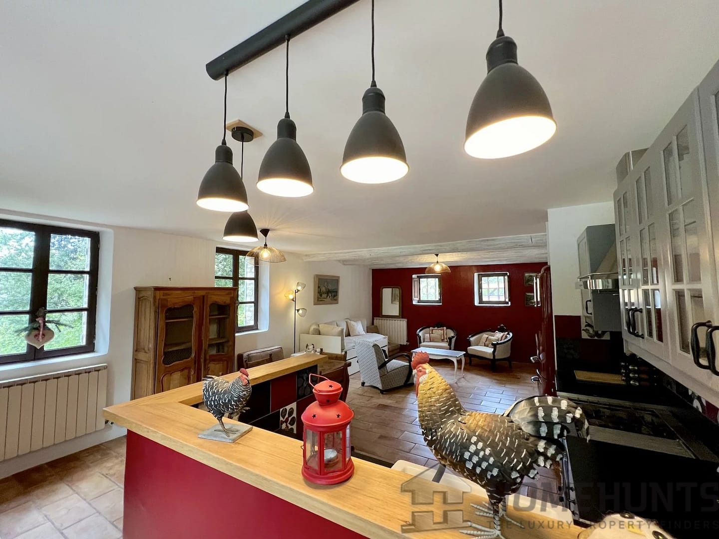 * Garden level (the outbuilding with independent access): a large living room with equipped kitchen, a bedroom, a bathroom (sink and shower) and a separate toilet. a wine cellar and a technical room complete the ensemble.