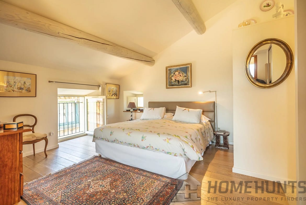 The ground floor is open-plan, bathing the entire living space in light and allowing you to admire the Luberon massif from the glass roof through the large bay window on the south-facing facade…This bay window opens onto a vast wooden terrace, adorned with a fragrant jasmine, with a breathtaking 180 degree view over the Luberon Mountains, the Provencal roofs, the hilltop village of Bonnieux and the Chateau de Lacoste.