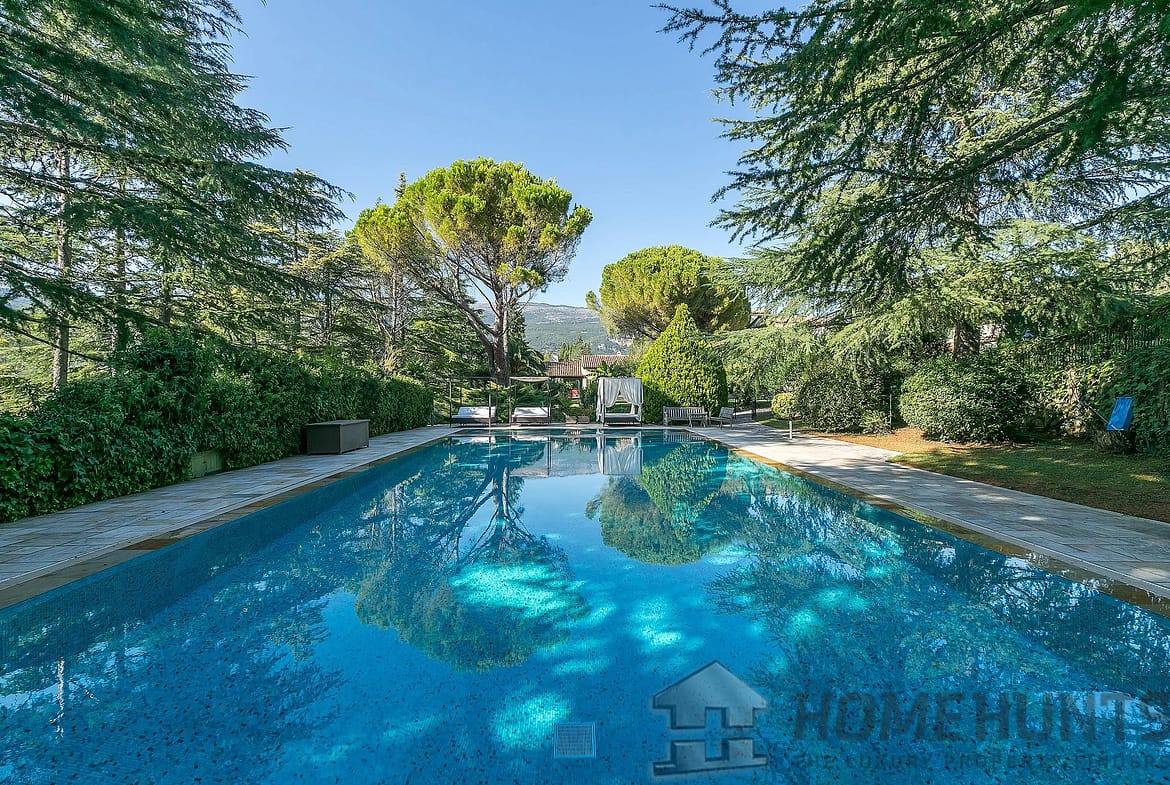 Spanning more than 1,5 ha with swimming pool and tennis court, the property encompasses a 8-bedroom main home, with a kitchen, a large lounge, a billiard room with fireplace, an indoor pool, sauna and Jacuzzi.