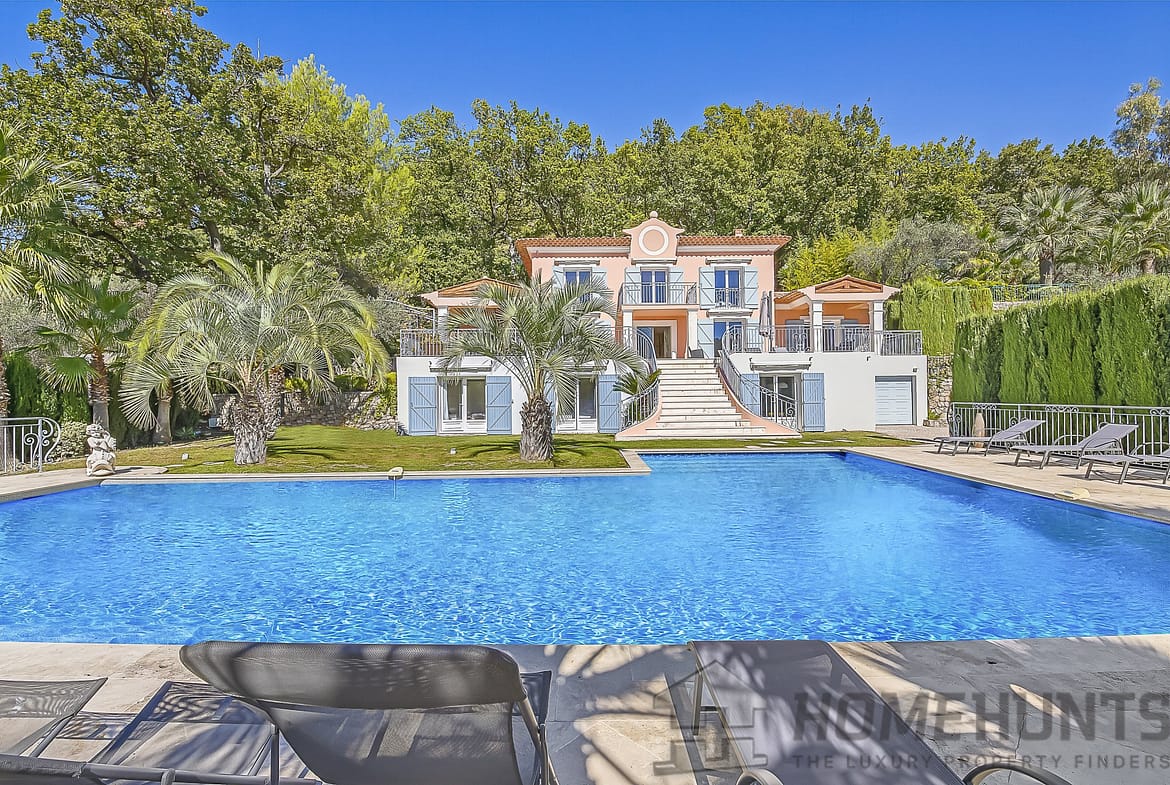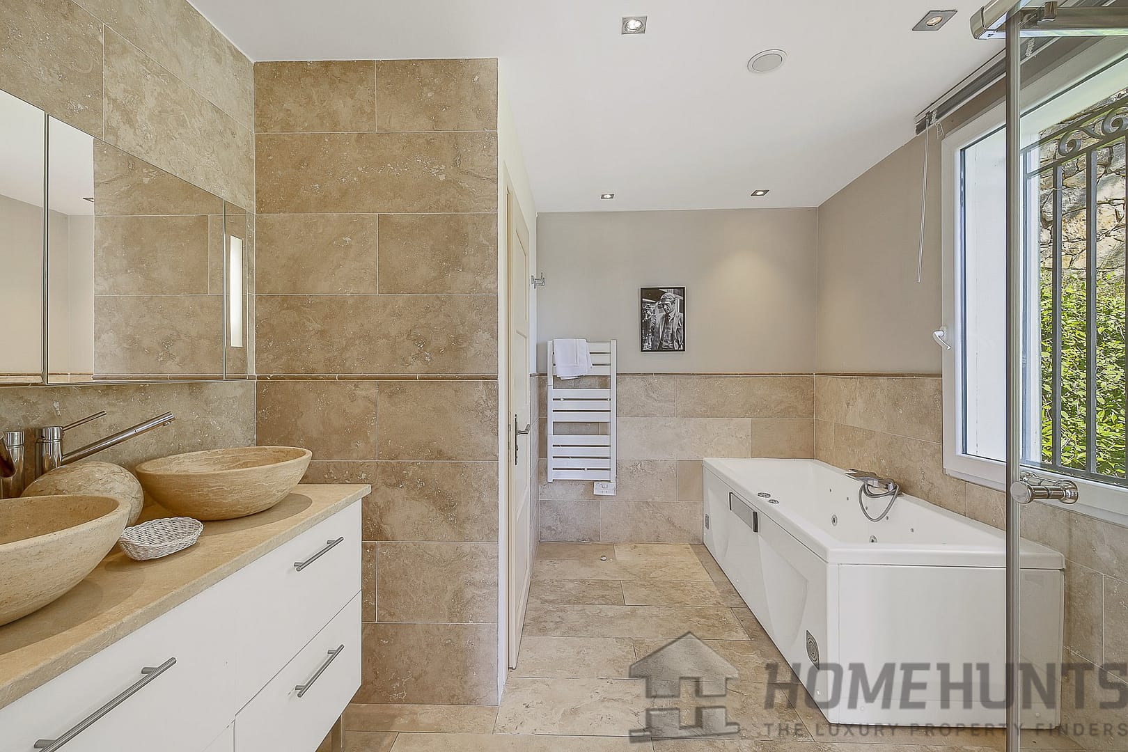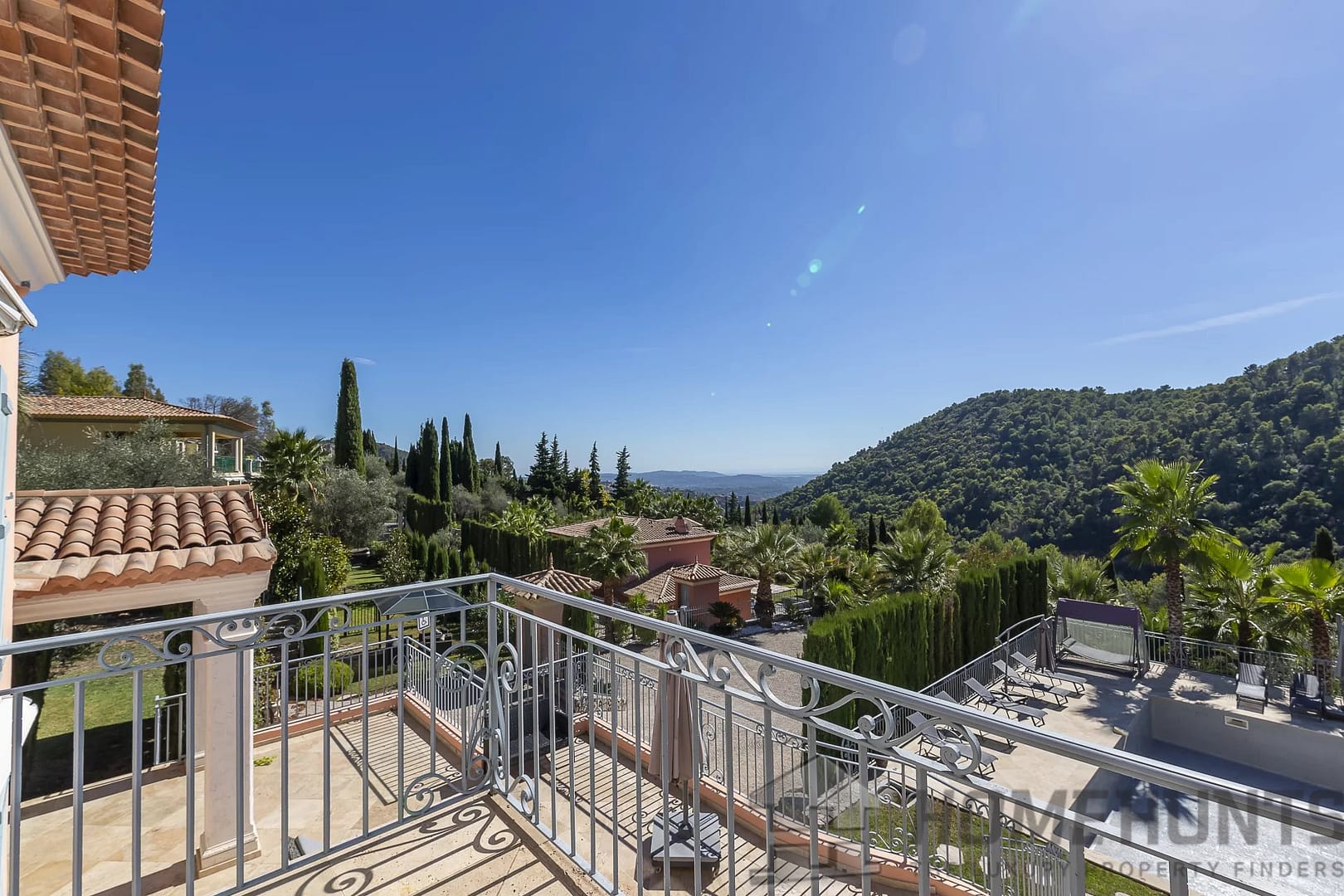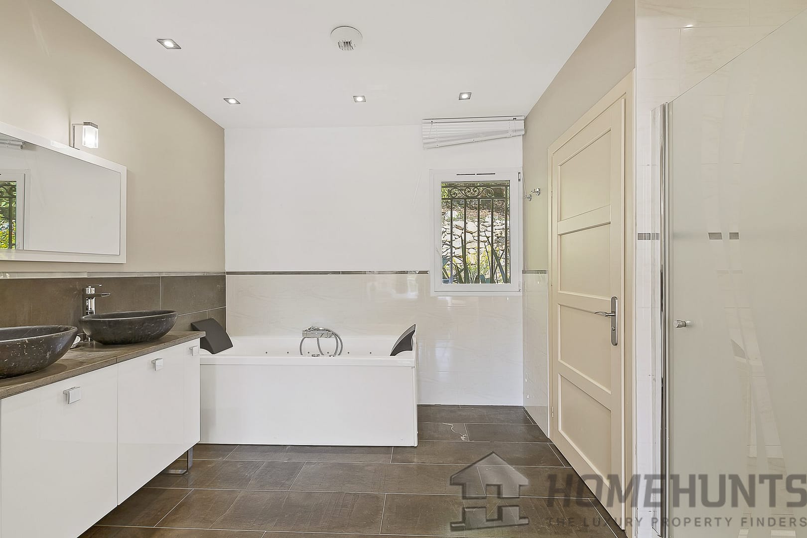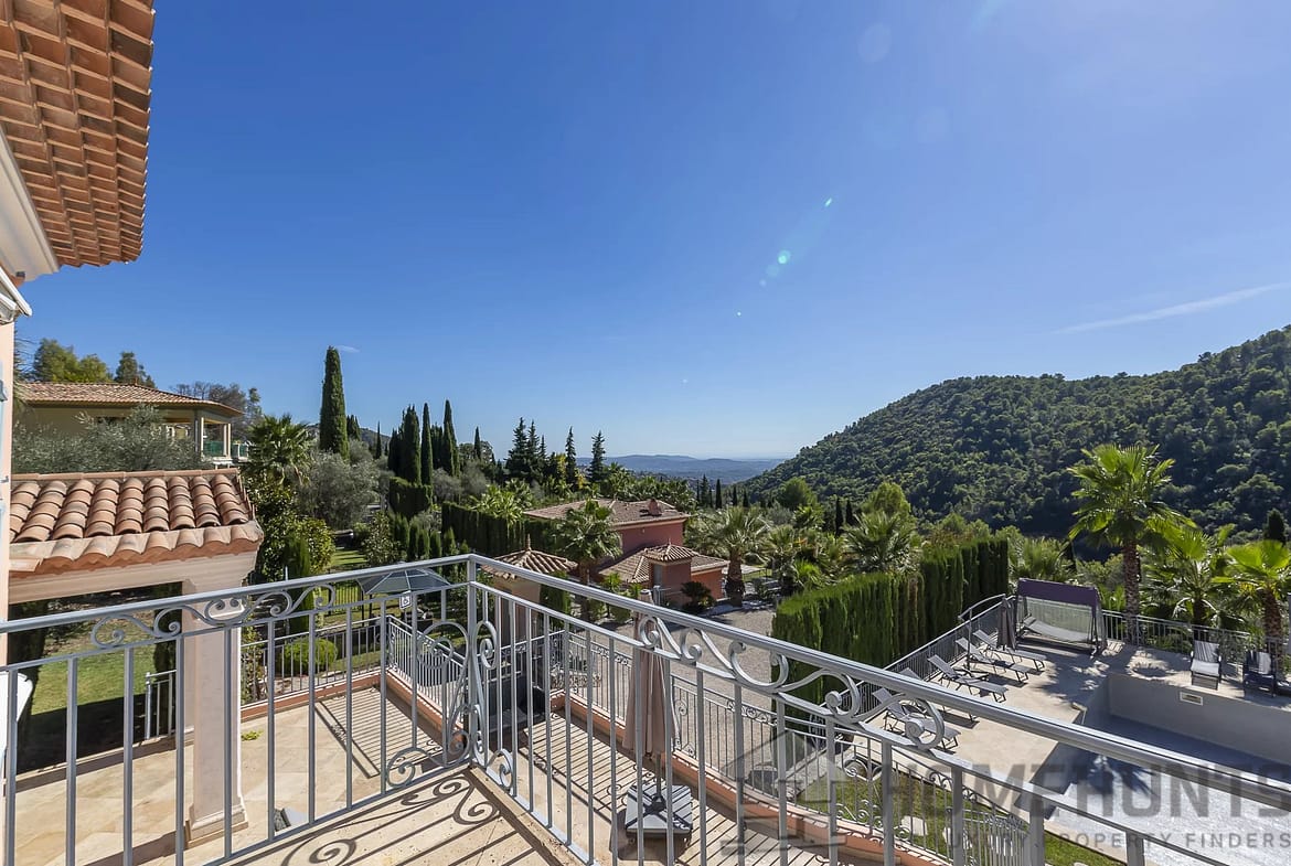 Luxurious neo-proveníçal villa of 390m2 with elegant fittings located in an intimate domain of three villas in a dominant position built on a ground planted with palm trees and various Mediterranean species.