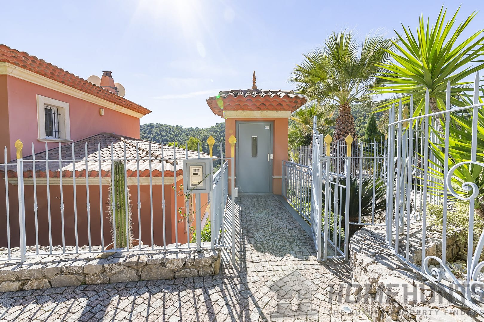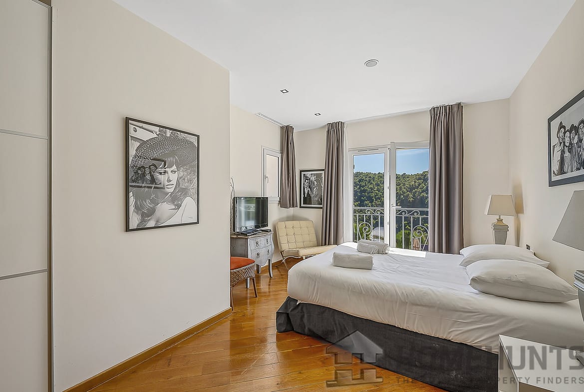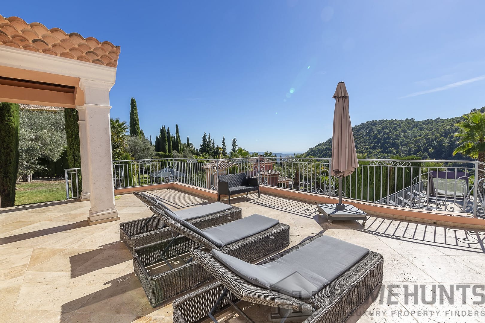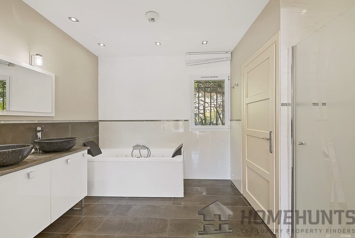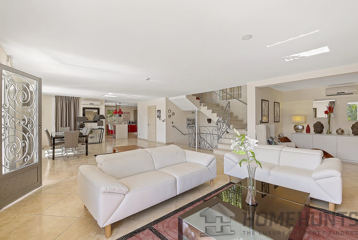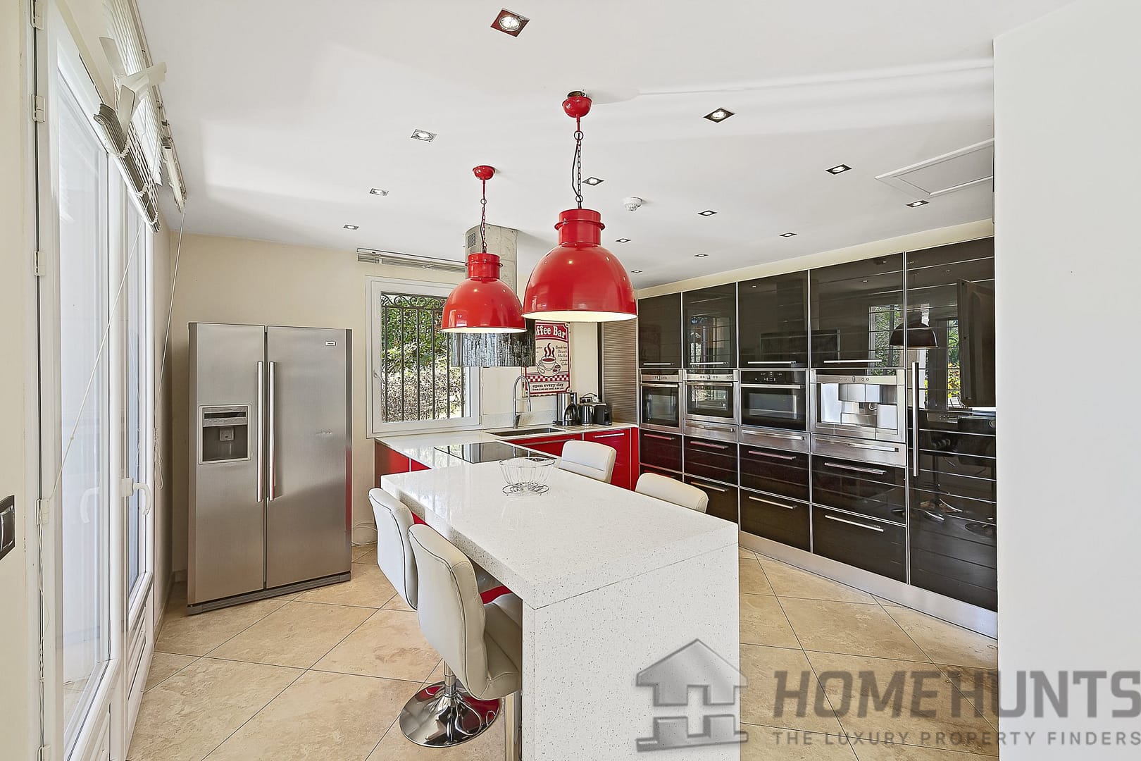 Luxurious neo-proveníçal villa of 390m2 with elegant fittings located in an intimate domain of three villas in a dominant position built on a ground planted with palm trees and various Mediterranean species.