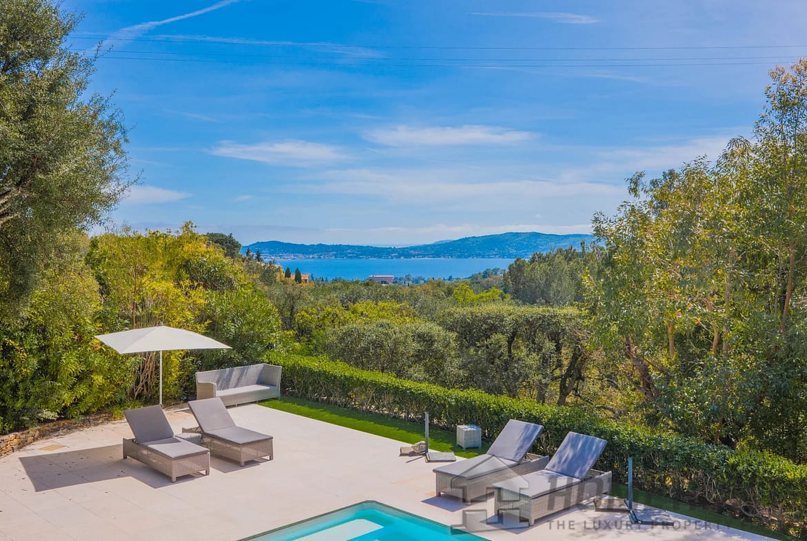 This beautiful Provencal villa was fully renovated with taste and sale in 2022. The property is located in the prestigious gated domain of Beauvallon Bartole , offering a sea view over the bay of Saint-Tropez.