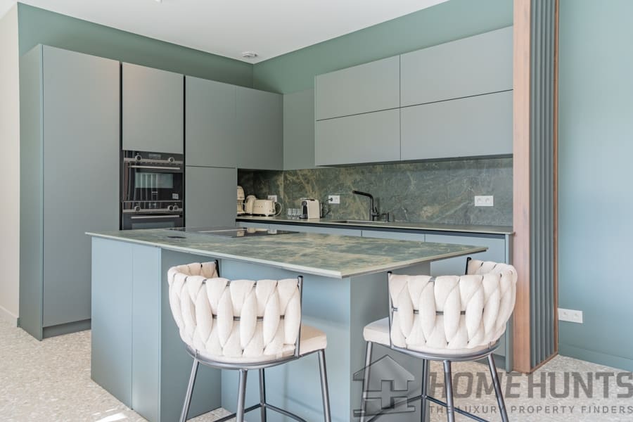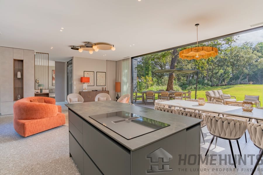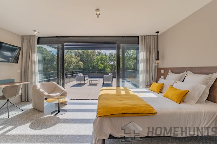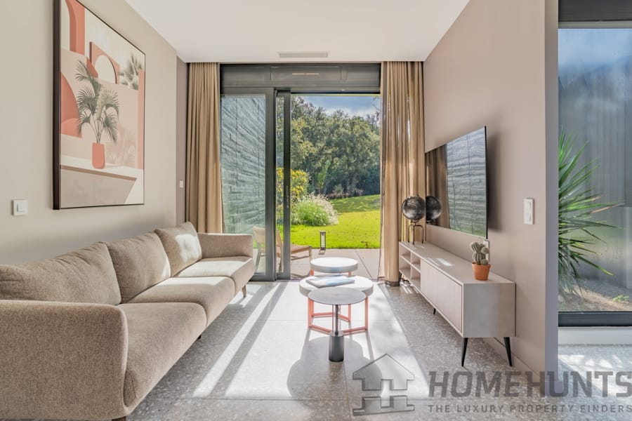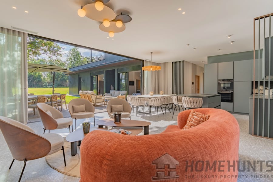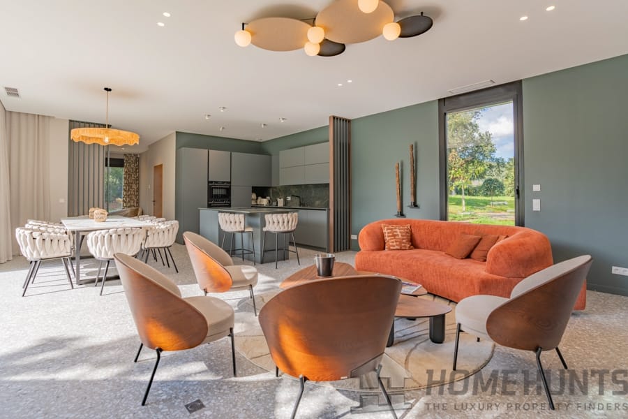 – Elegant Contemporary Design – Spacious, light-filled living area opening onto terraces