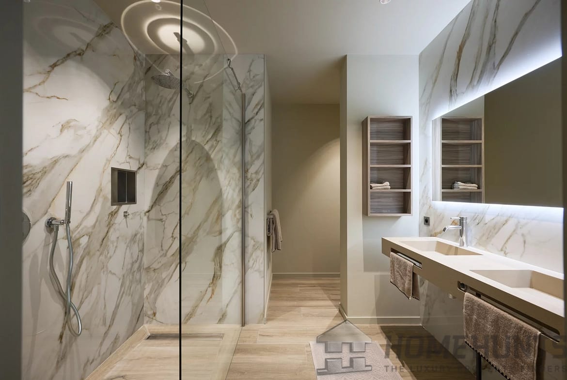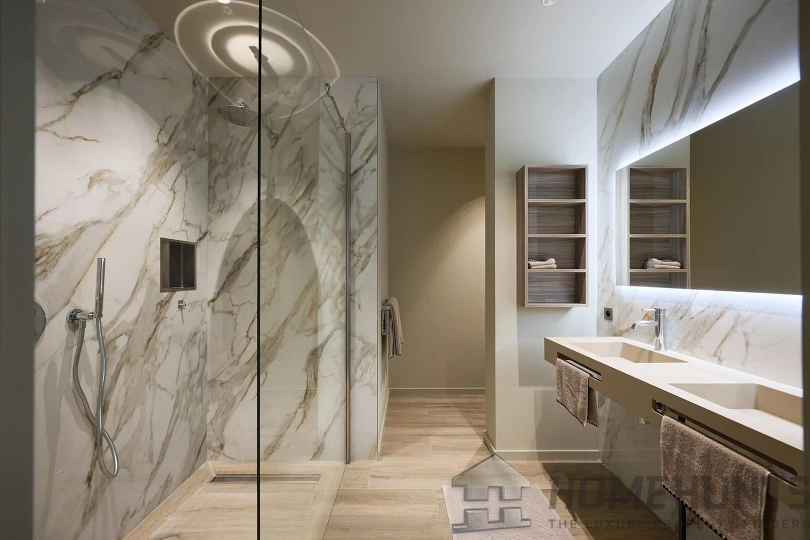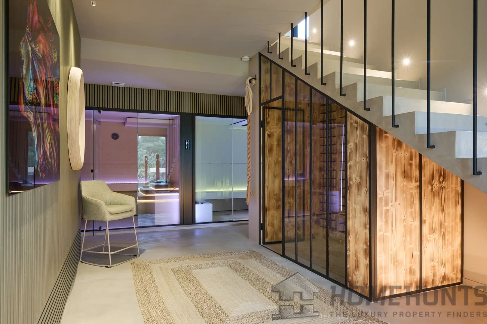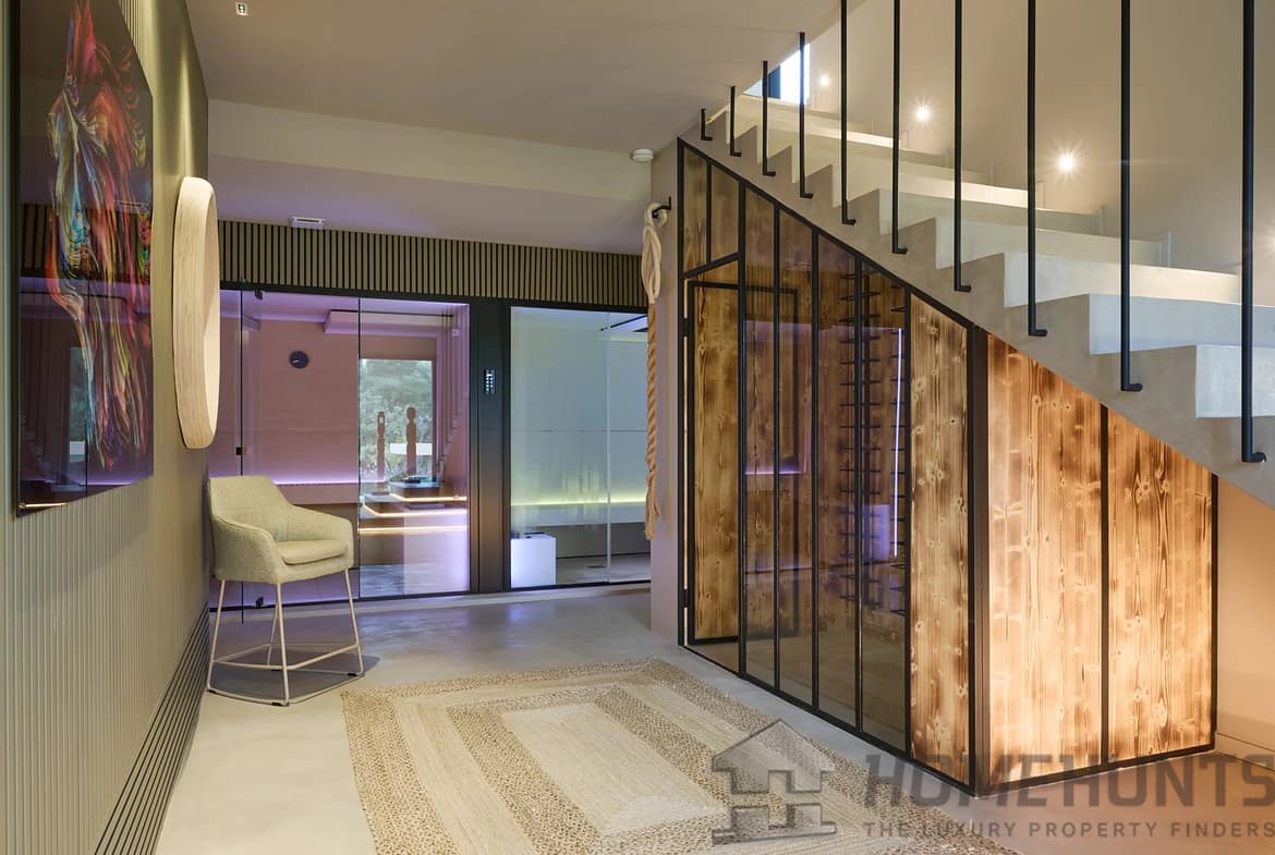 For ultimate relaxation and enjoyment, the villa includes a range of leisure spaces, such as a wine cellar for connoisseurs, a laundry room, and a dedicated cinema room for movie nights with family and friends. Additionally, a well-appointed hammam and sauna area provide a spa-like experience, enhancing the property’s offering of refined living.