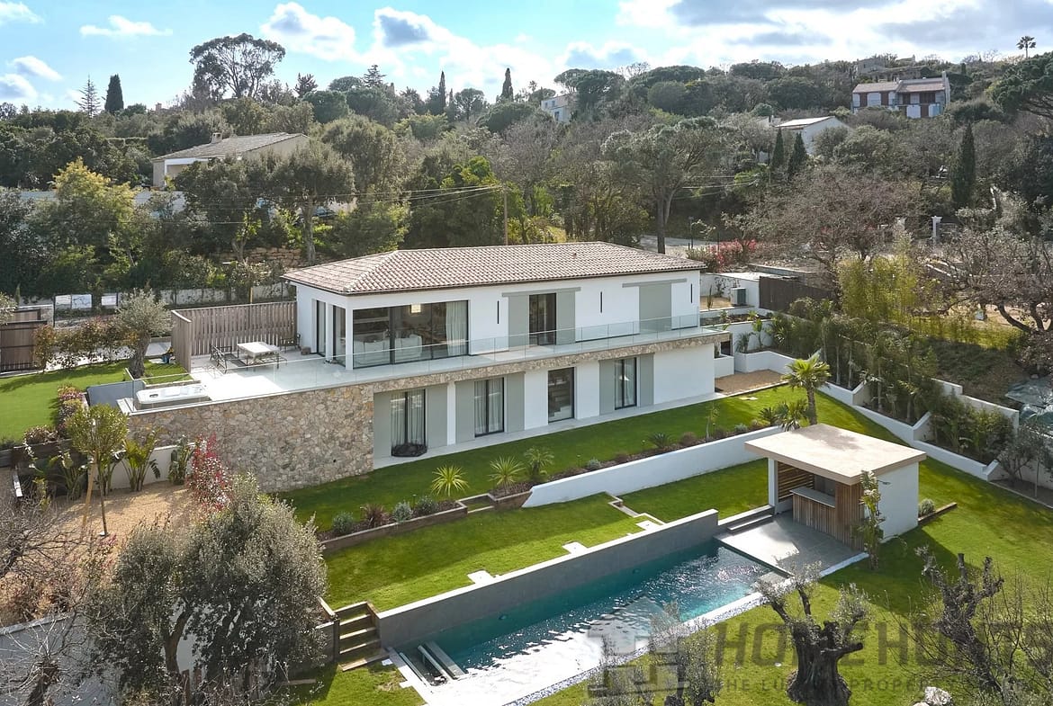 The villa is set on a generous 1,627 m2 plot, with meticulously landscaped grounds designed for maximum enjoyment. Step outside to discover a beautiful heated swimming pool surrounded by ample space for sunbathing, complemented by a stylish pool house for outdoor dining and entertaining. This is truly the perfect environment to enjoy the Mediterranean climate in ultimate comfort and privacy.