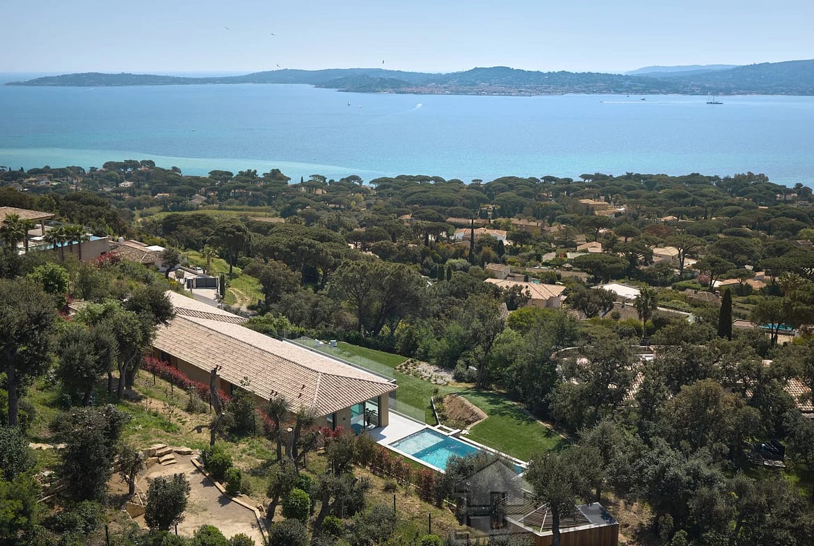 Nestled in one of the most sought-after residential areas of Grimaud, this contemporary villa boasts a breathtaking panoramic view over the sea and the Gulf of Saint-Tropez.