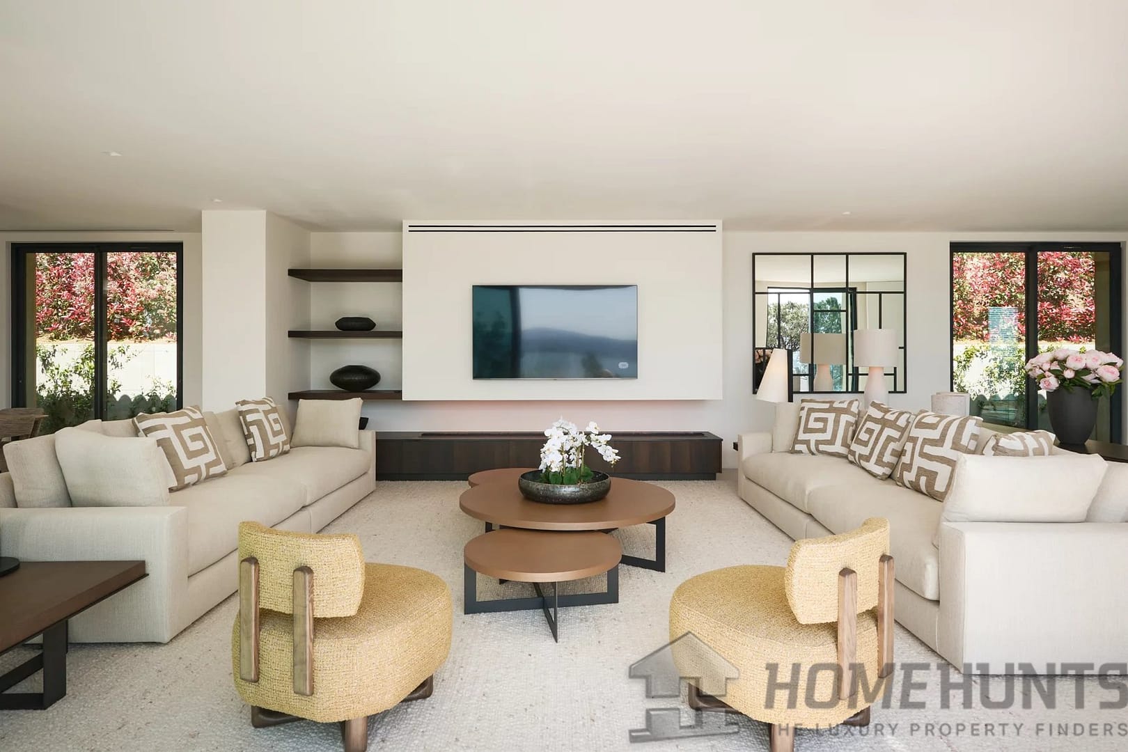 The lower level comprises four additional en-suite bedrooms, a laundry room, and a large multipurpose space ideal for a home gym, games room, or private cinema.