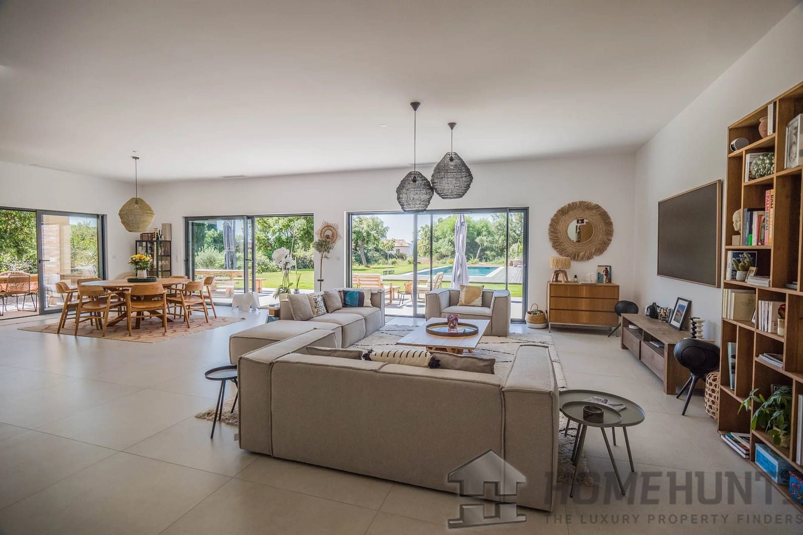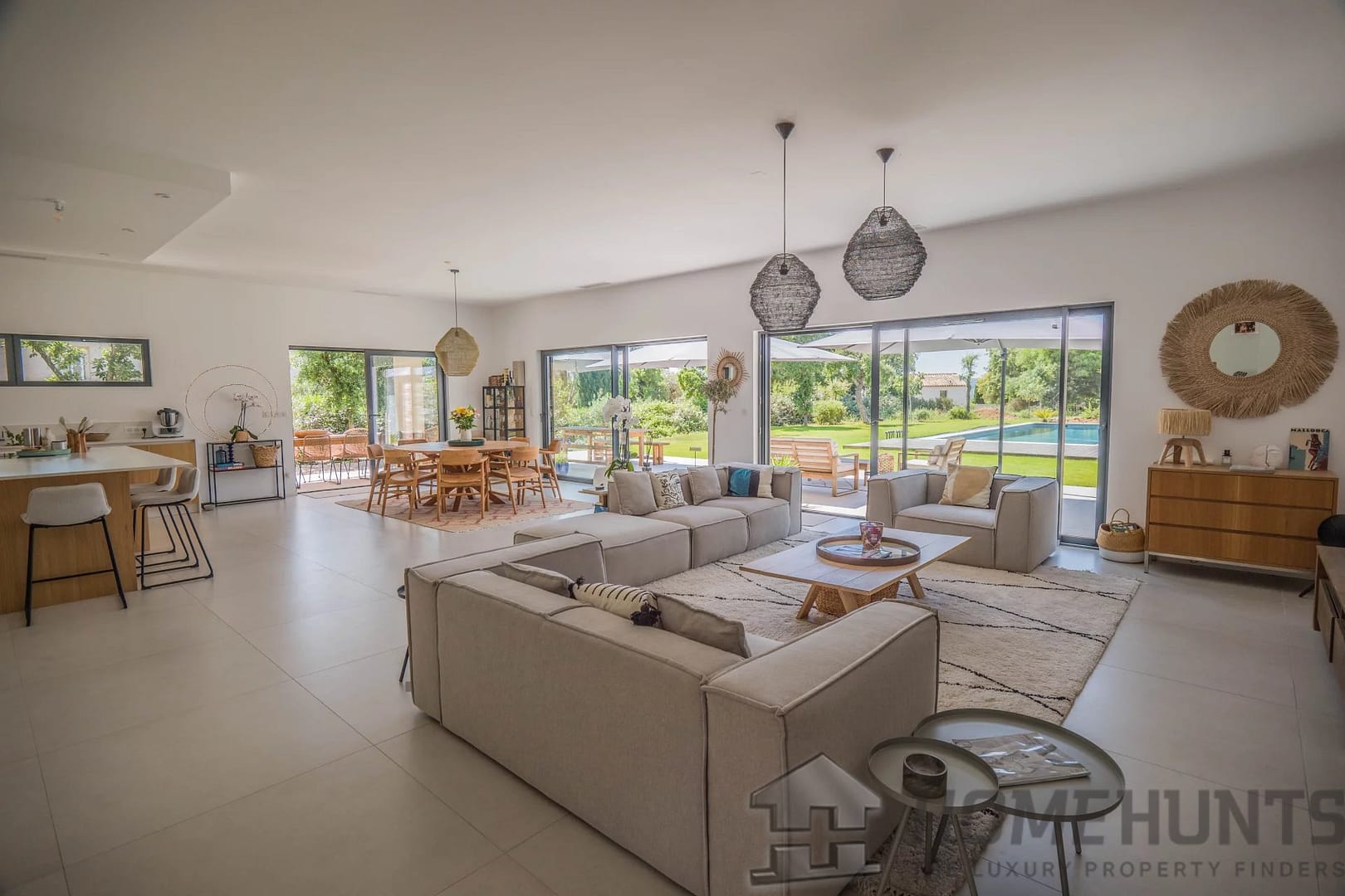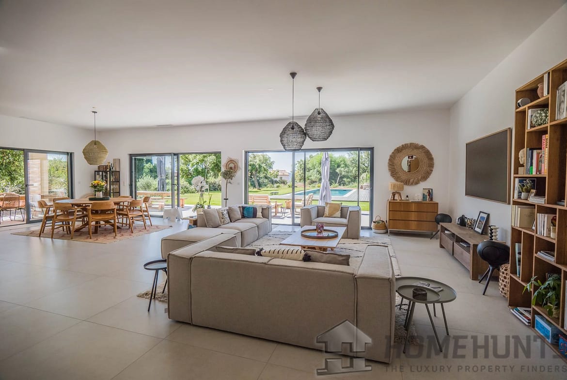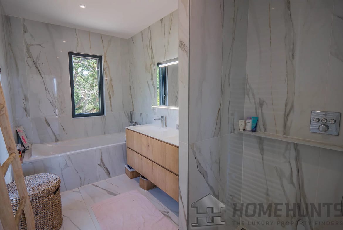 Bathed in natural light, the generous open-plan living room and contemporary fitted kitchen flow effortlessly onto expansive terraces and a flat, landscaped garden — ideal for al fresco entertaining.