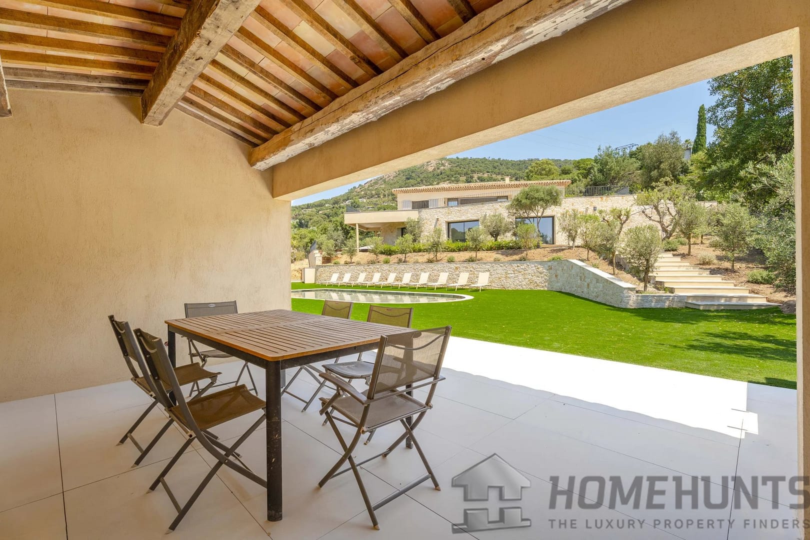 Large garage, heated swimming pool surrounded by large terraces, pool house