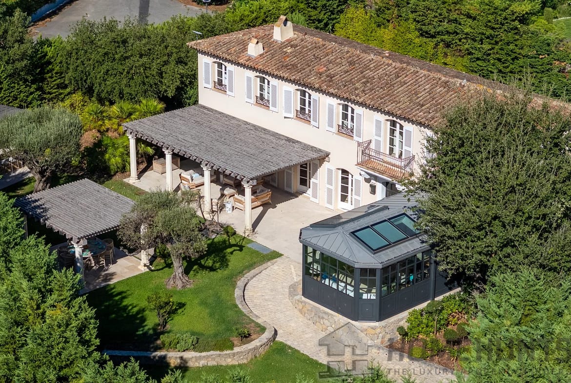 Outside, the property extends over 2,100 m2 of beautifully landscaped grounds, with shaded terraces, a summer kitchen and a large swimming pool inviting you to relax.