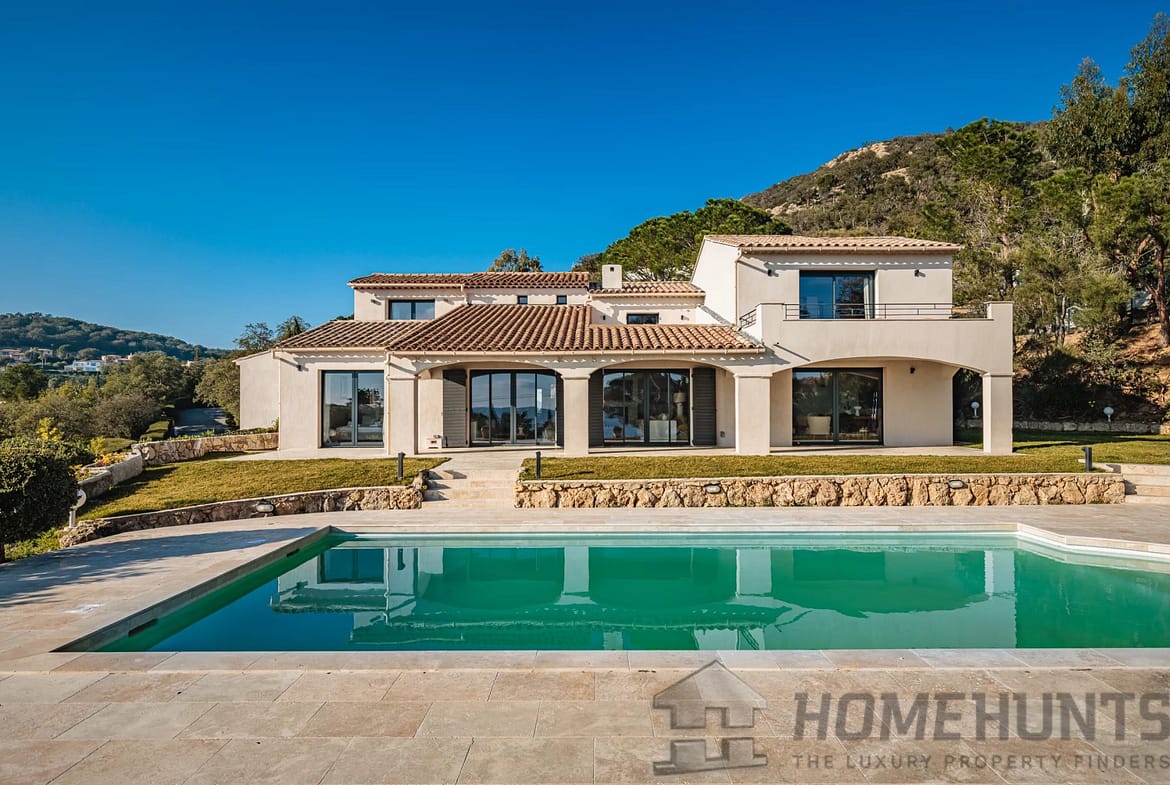 The villa has 5 en suite bedrooms opening onto terraces with views over the Gulf of Saint-Tropez.