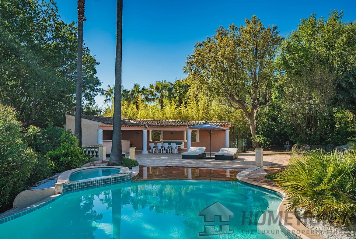 Located within a secure estate, close to the village of Grimaud, this superb Provencal-style villa offers a peaceful and refined living environment.