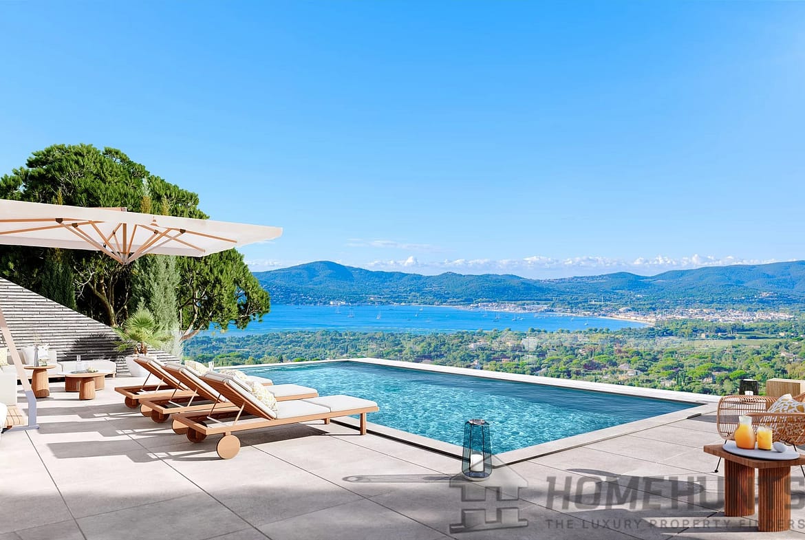 Outside, a carefully designed landscaped garden surrounds a superb swimming pool, all enhanced by unobstructed views of the sea and hills.