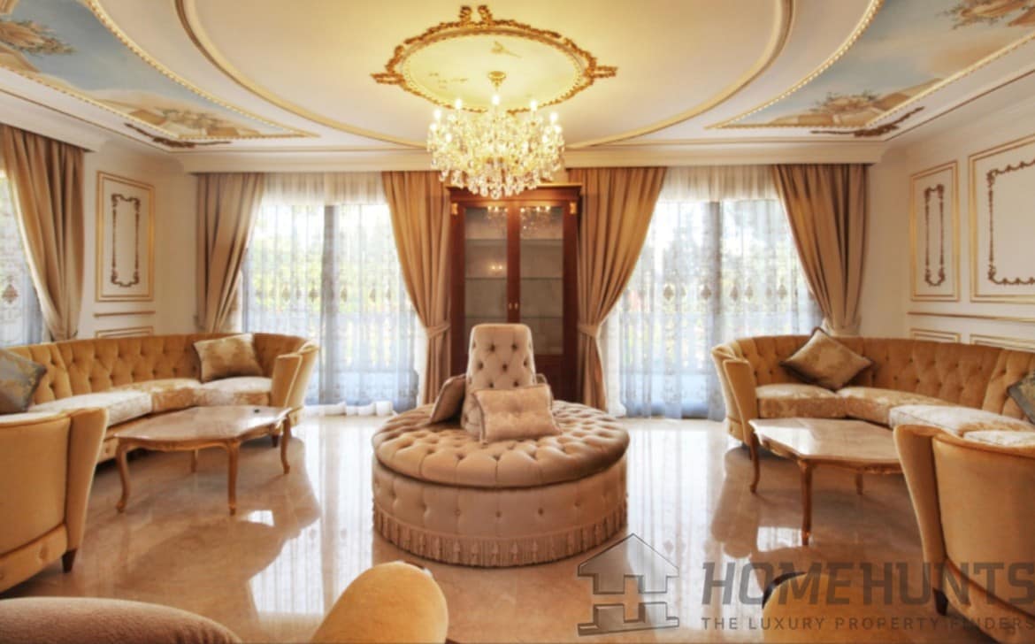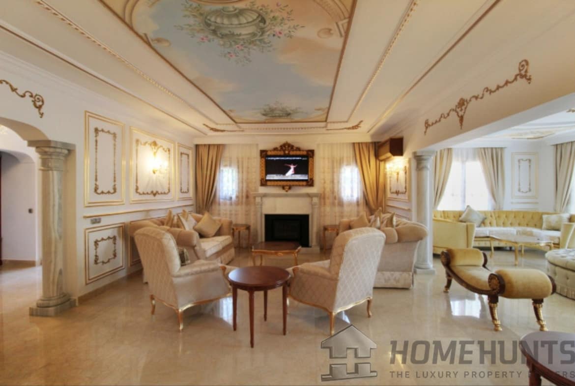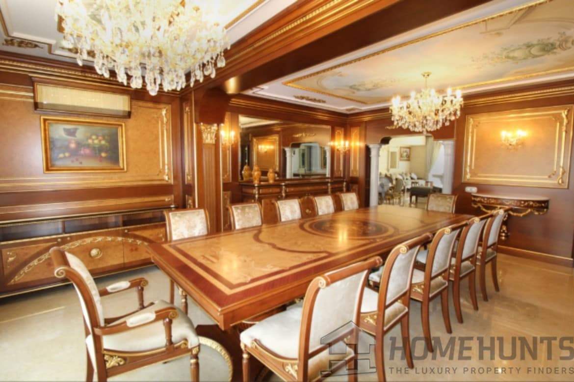 The villa offers very ornate hand painted wall and ceiling panels in all the main living areas and exceptional handmade bespoke Italian designer furniture throughout. The villa is a one of a kind with stone walling on the exterior and in the traditional Majlis lounge. One has to view to fully appreciate all the fine internal features of this very spacious family home.