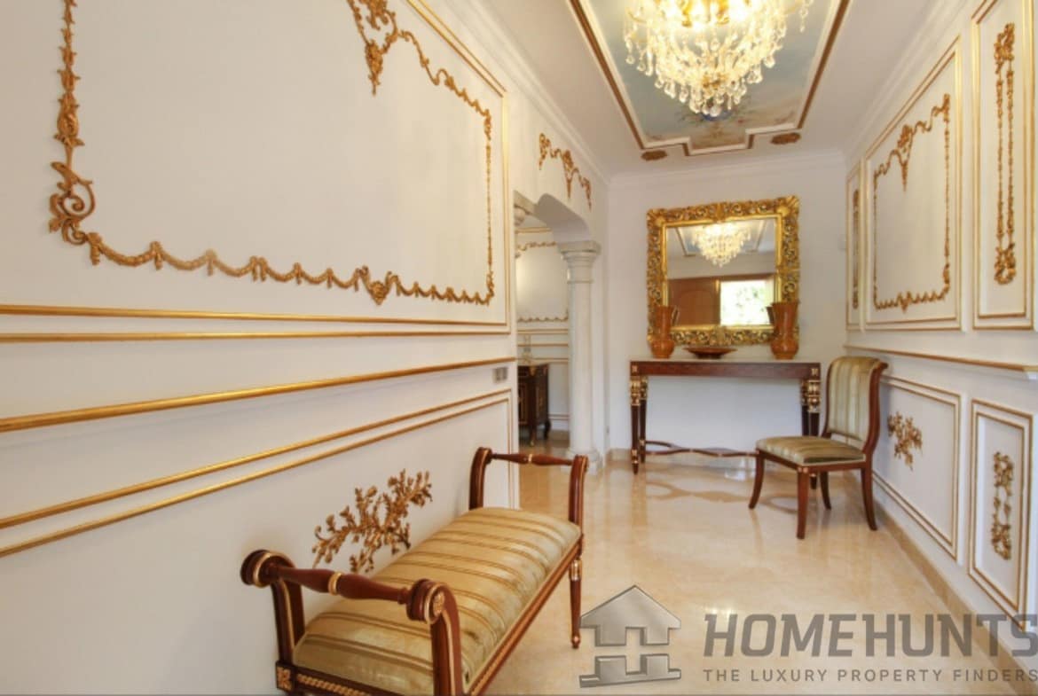 The villa has four-meter height impressive double entrance gates and an 81-meter long driveway with parking for numerous cars. Situated on a huge 4,100 m2 flat plot in Guadalmina Baja and only 322 meters walking distance to a lovely beach and Dantonelas Beach Club.
