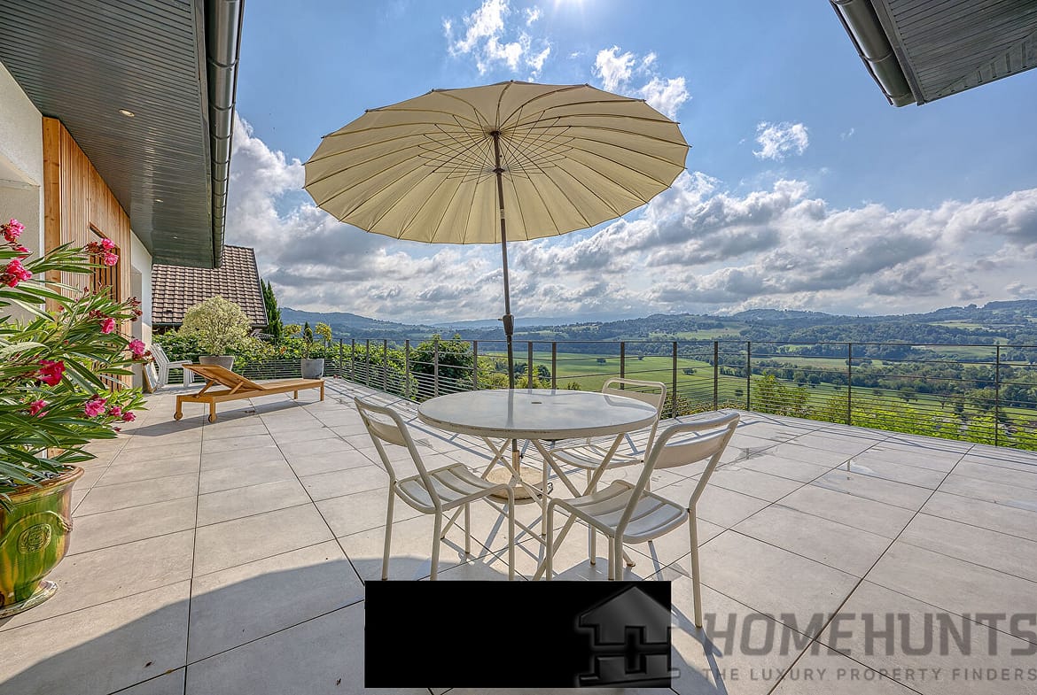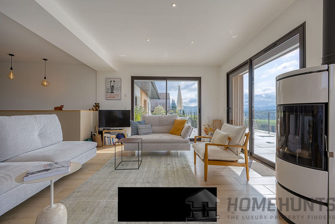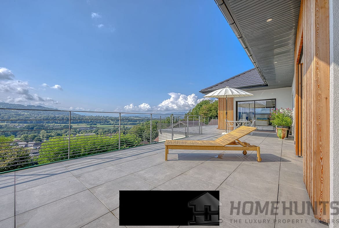 This contemporary house with an exceptional and breathtaking view of Mont Blanc and its mountains is located in the quiet town of Hauteville-sur-Fier.