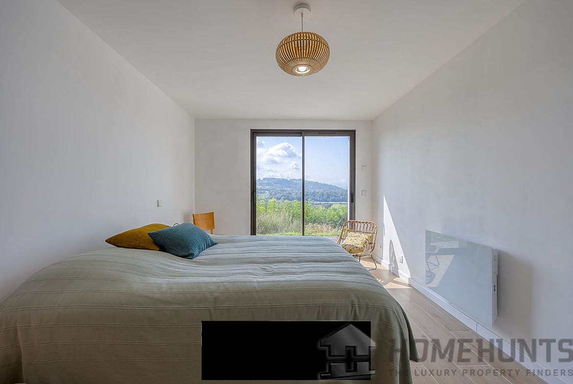 Built on a plot of approximately 1650 m2, this house of approximately 194 m2, fully automated, offers beautiful volumes and benefits from very beautiful light. From the entrance, the tone is set with a large living room of approximately 45 m2 where the volumes naturally define the kitchen, dining room and living room areas. The contemporary wood stove, the fully fitted kitchen with clean lines, and the beautiful fittings give this living space a unique character with undeniable charm. Large openings to the outside with direct access to the terrace, a breathtaking view, as well as contemporary decoration enhance the whole. Three beautiful bedrooms, a charming bathroom with bathtub, sinks and storage, as well as a shower room complete this first level on one level.