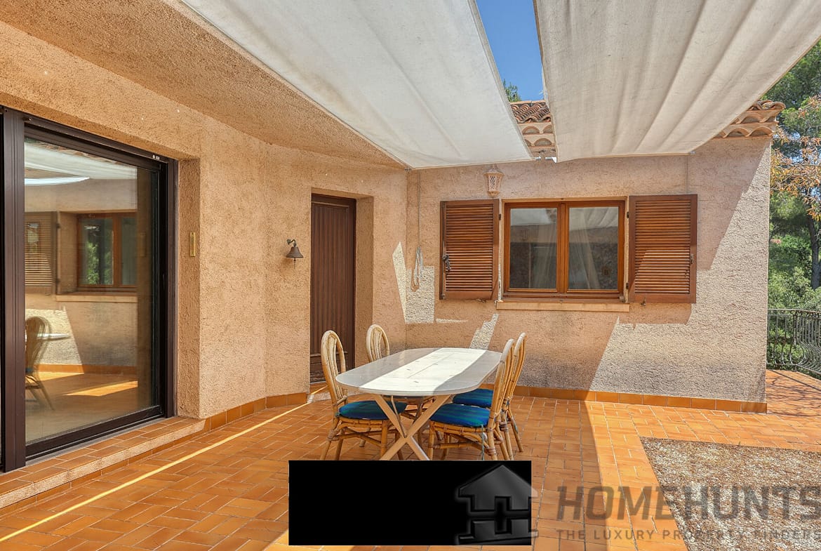 The exterior fully contributes to the property’s charm. The landscaped garden, planted with Mediterranean species, surrounds the house with greenery and guarantees perfect privacy. Several terraces allow you to enjoy the different moods of the day, between shade and sun, while the central patio invites relaxation. The slightly terraced grounds offer beautiful landscaping prospects, with the possibility of installing a swimming pool.