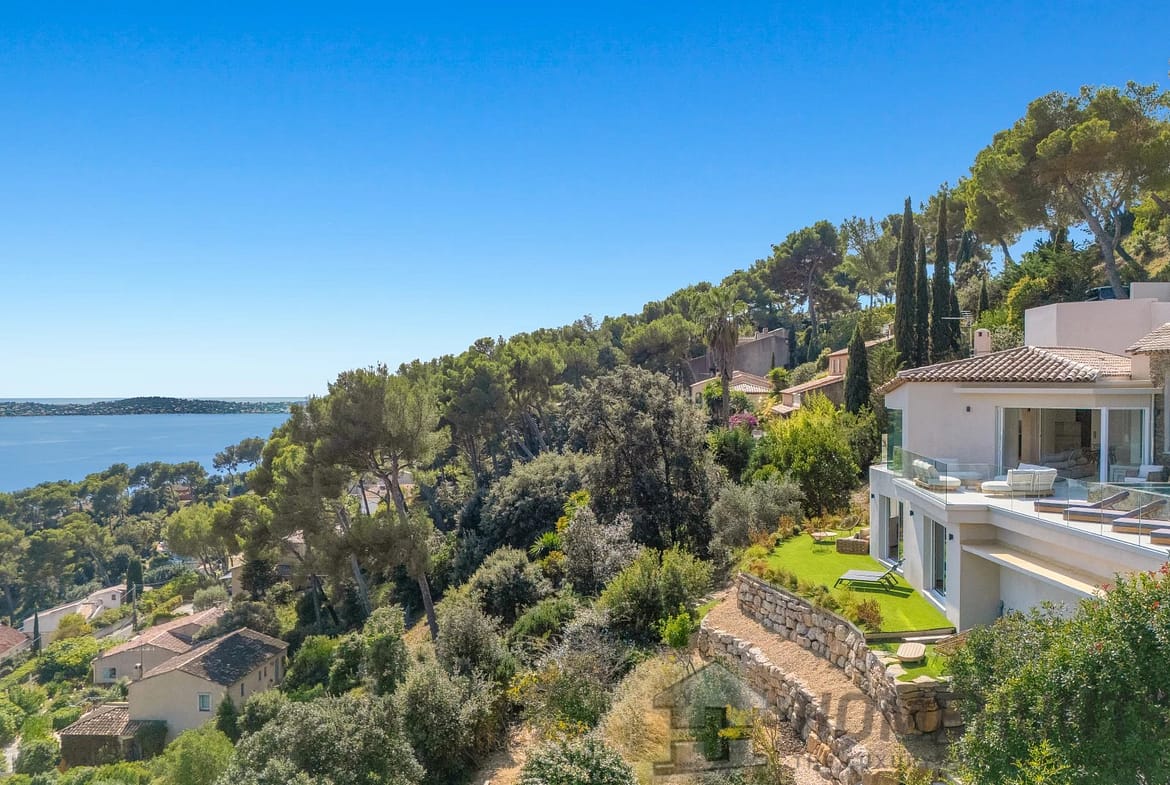 Contemporary villa renovated in 2025 by a renowned architect, offering panoramic sea views over the Giens Peninsula, Porquerolles, and Port-Cros.