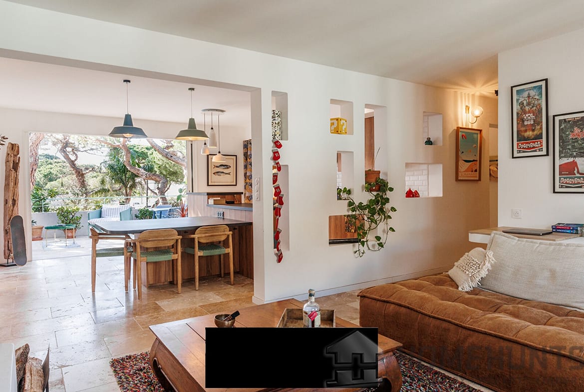 Just steps from the beach, in the heart of the sought-after La Capte district in Hyeres, this freehold property combines contemporary renovations, soothing views of nature, and rental profitability.