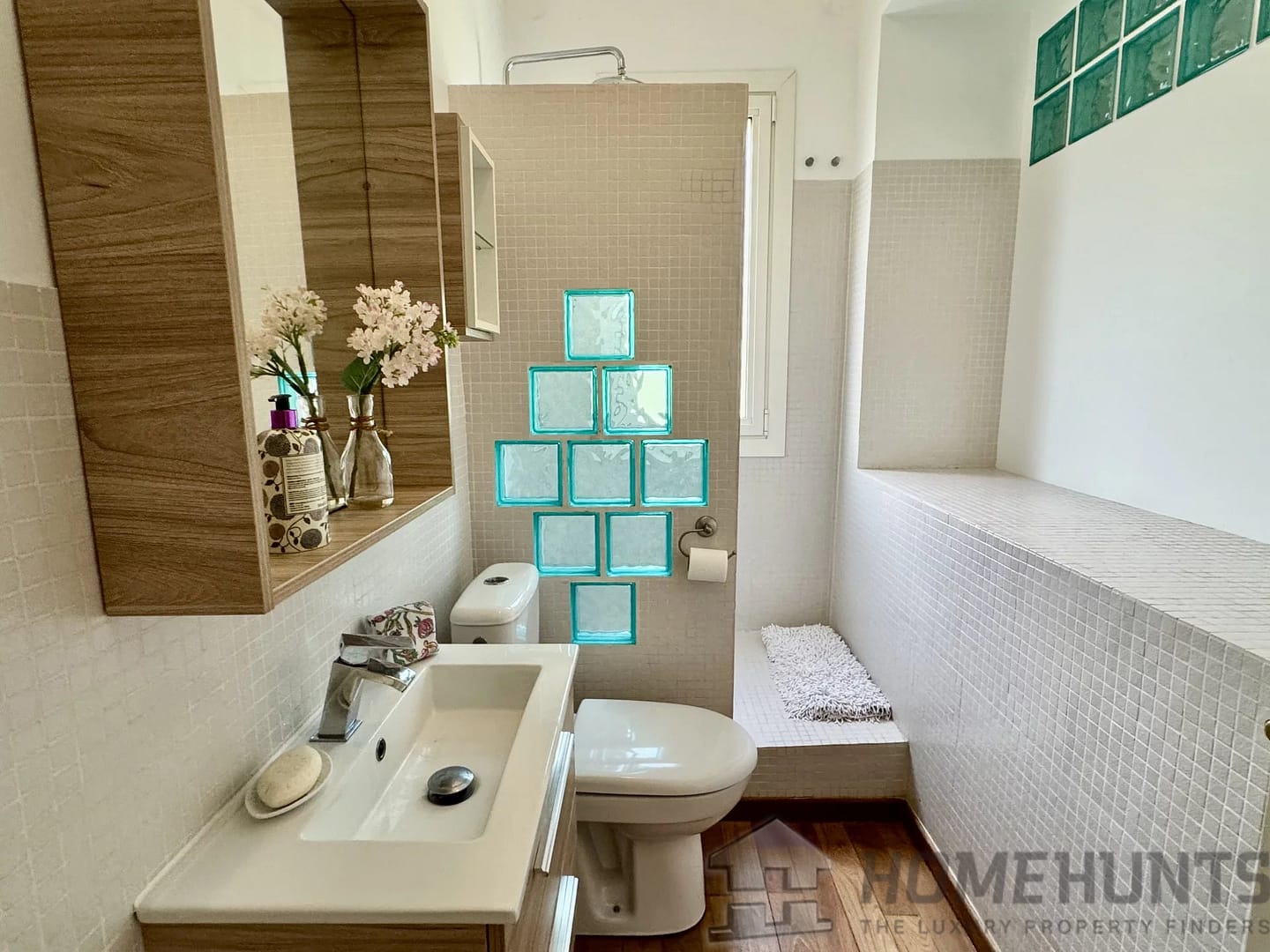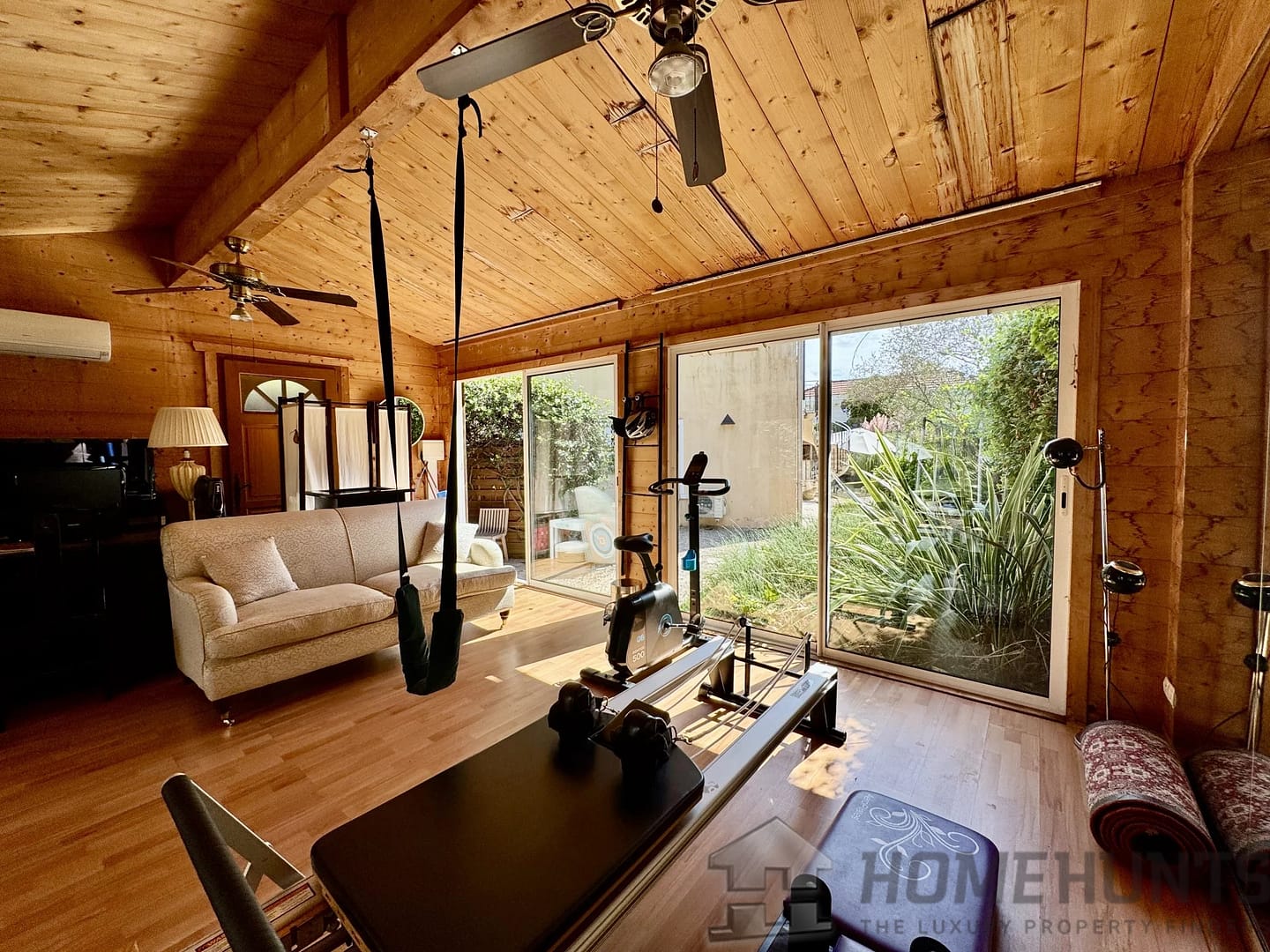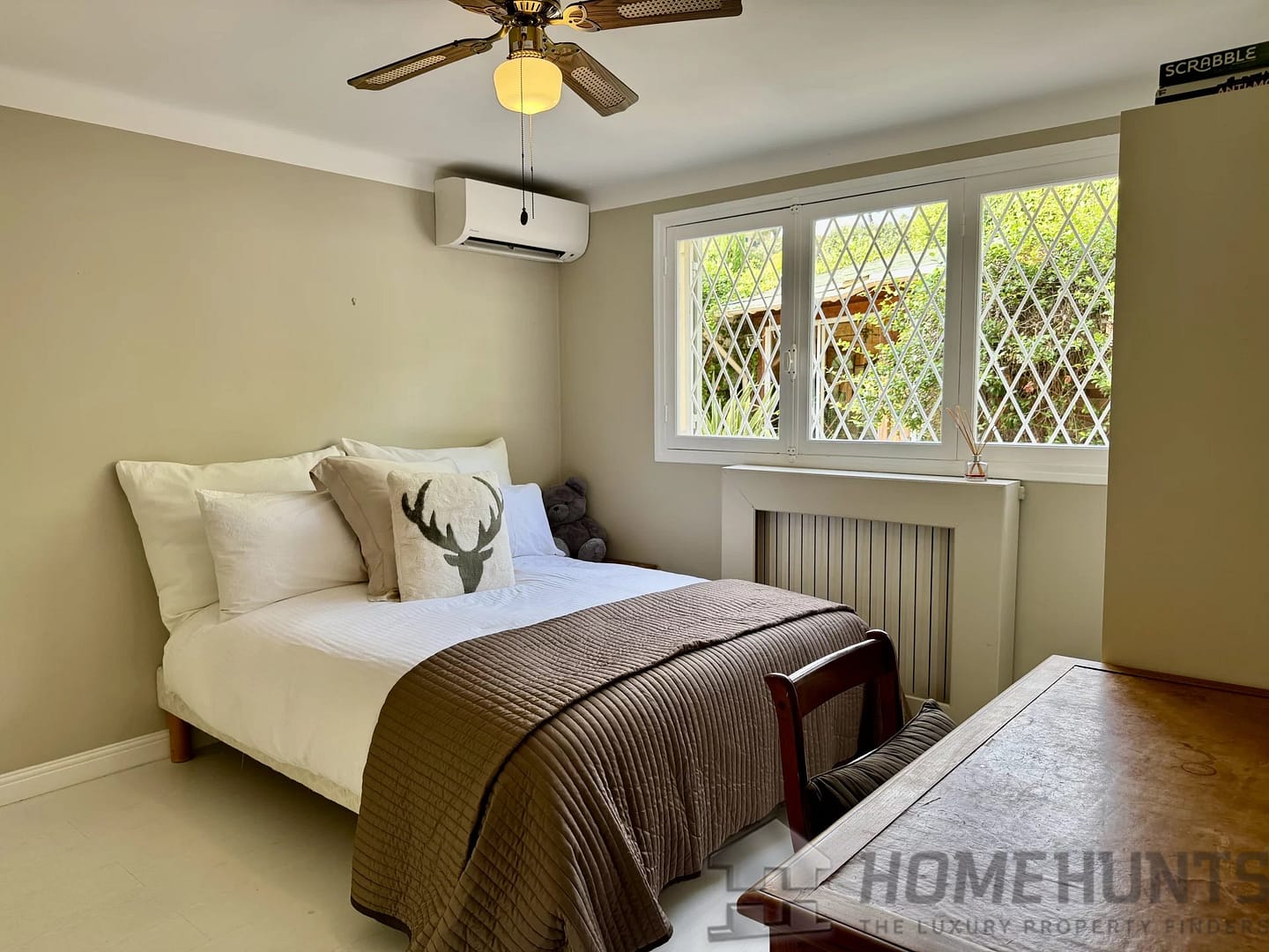 The attic offers scope for an additional 40 m2 of living space. The low-maintenance garden includes bougainvillea, jasmine, an olive tree, and a vegetable patch.