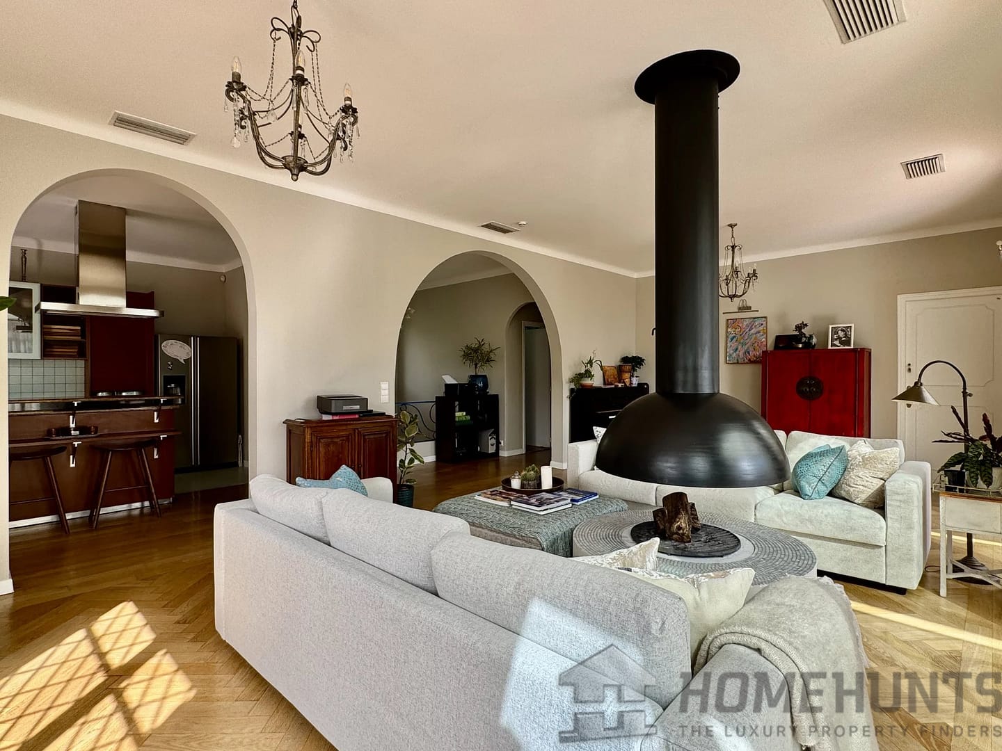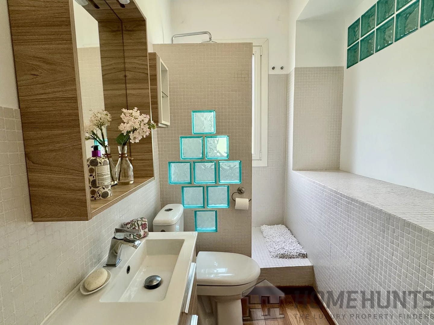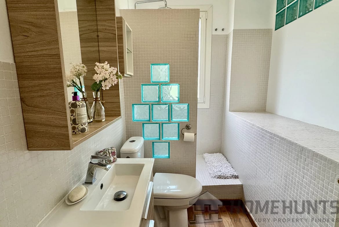 The attic offers scope for an additional 40 m2 of living space. The low-maintenance garden includes bougainvillea, jasmine, an olive tree, and a vegetable patch.