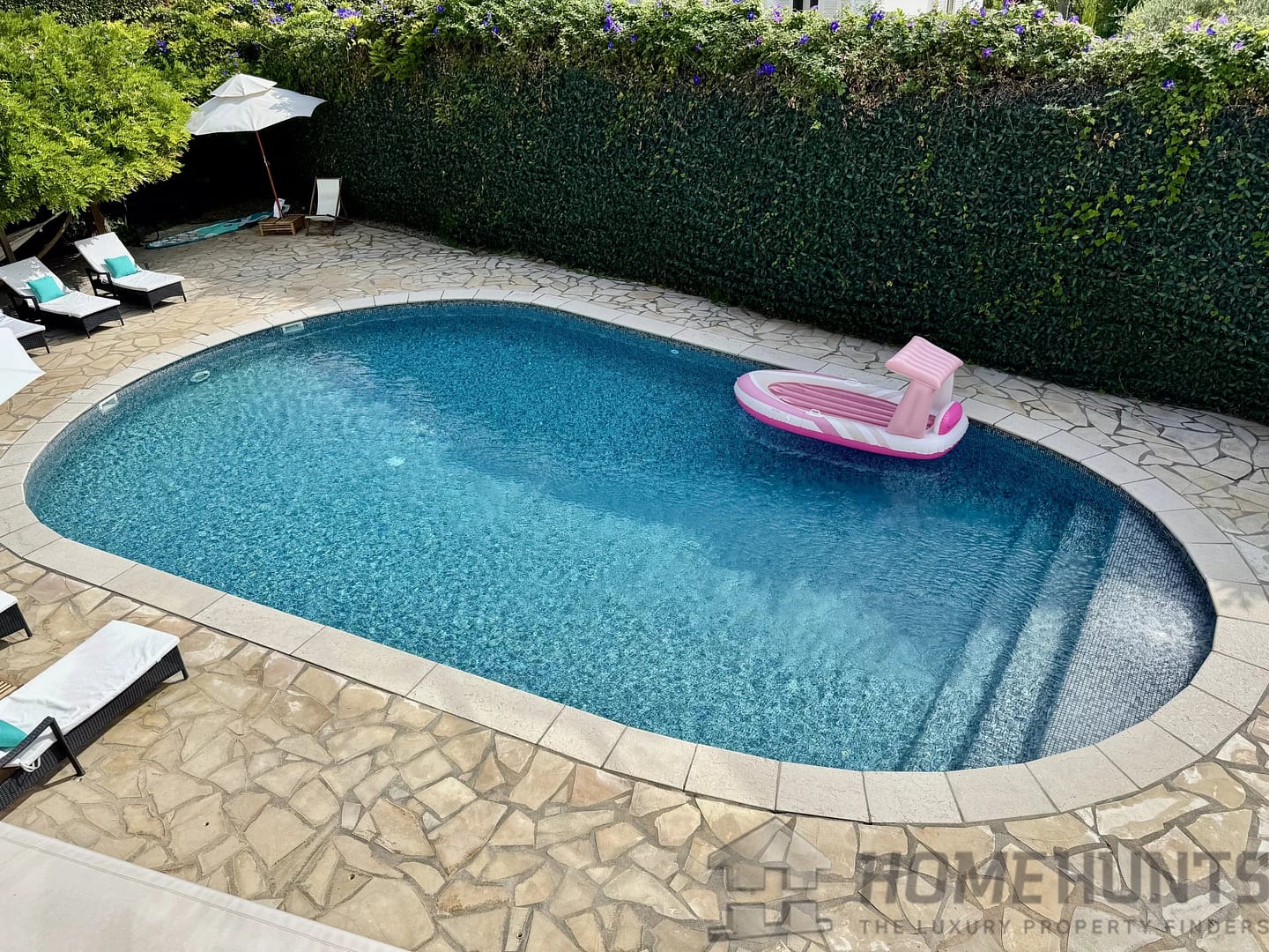 Just steps from the beaches, Hotel Belles-Rives, and close to the legendary Cap-Eden-Roc, the villa enjoys an ideal location, 25 minutes from Cannes and 30 minutes from Nice Airport.
