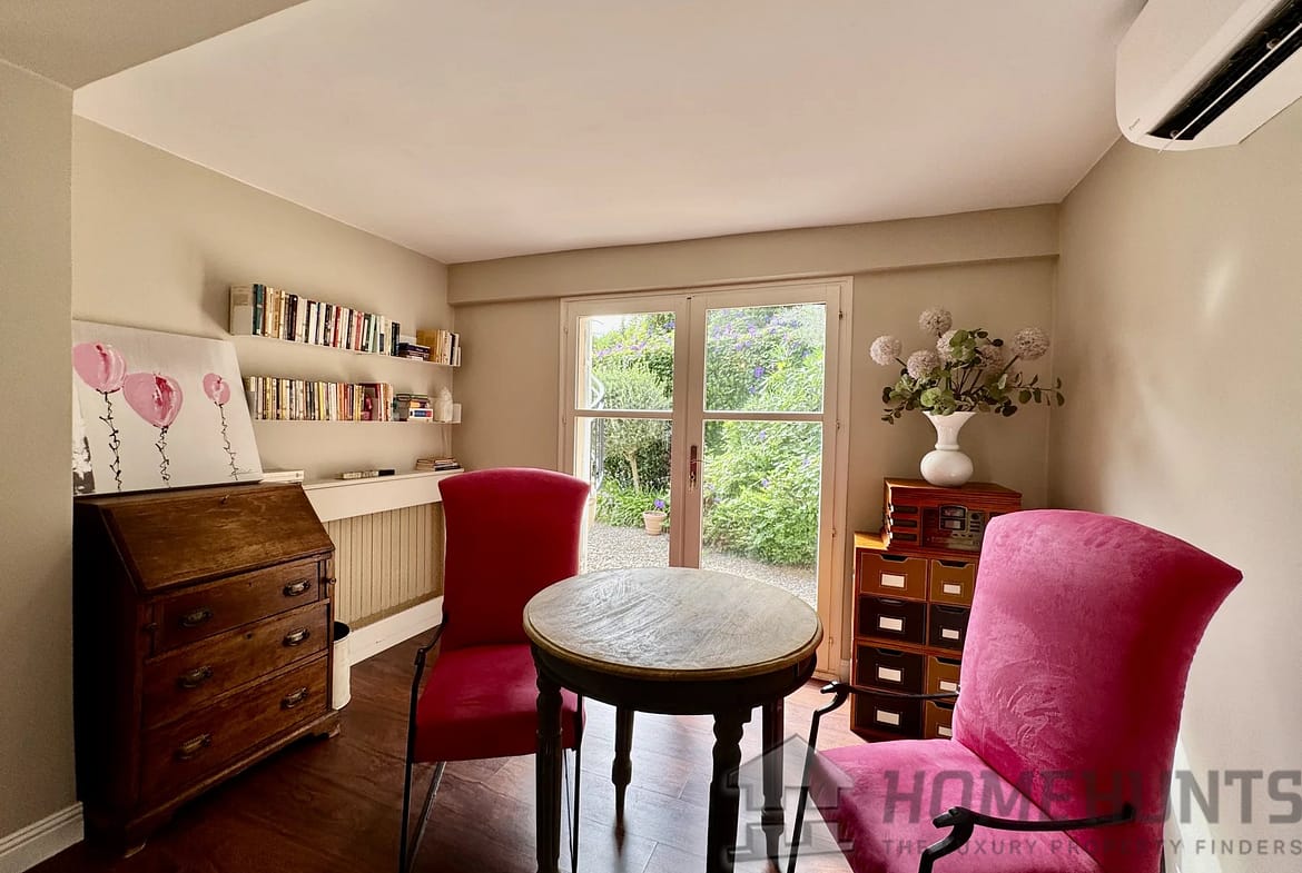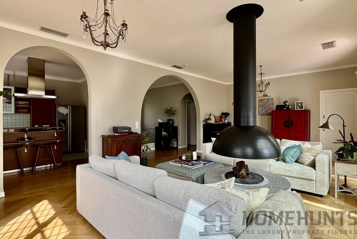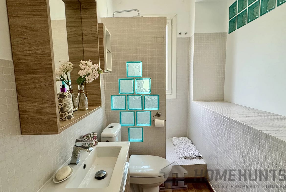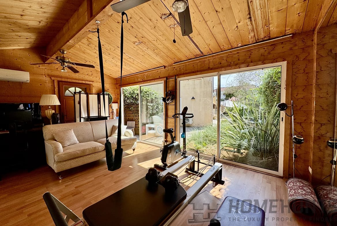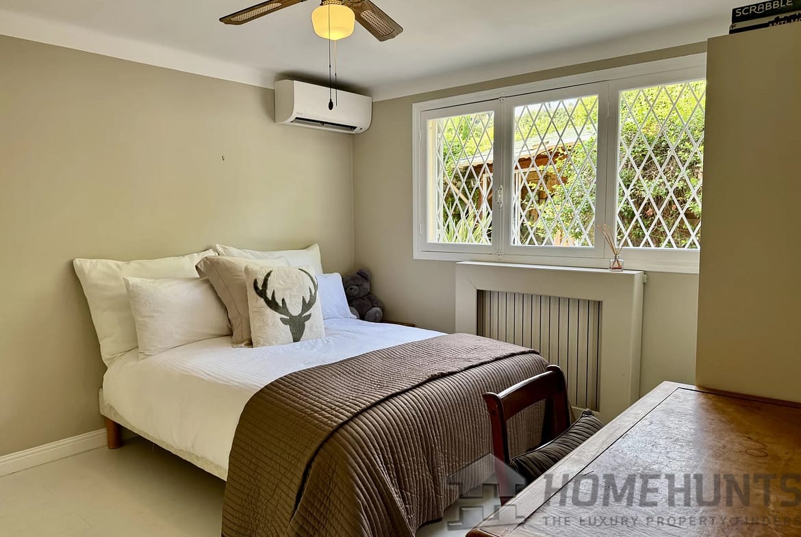 The attic offers scope for an additional 40 m2 of living space. The low-maintenance garden includes bougainvillea, jasmine, an olive tree, and a vegetable patch.