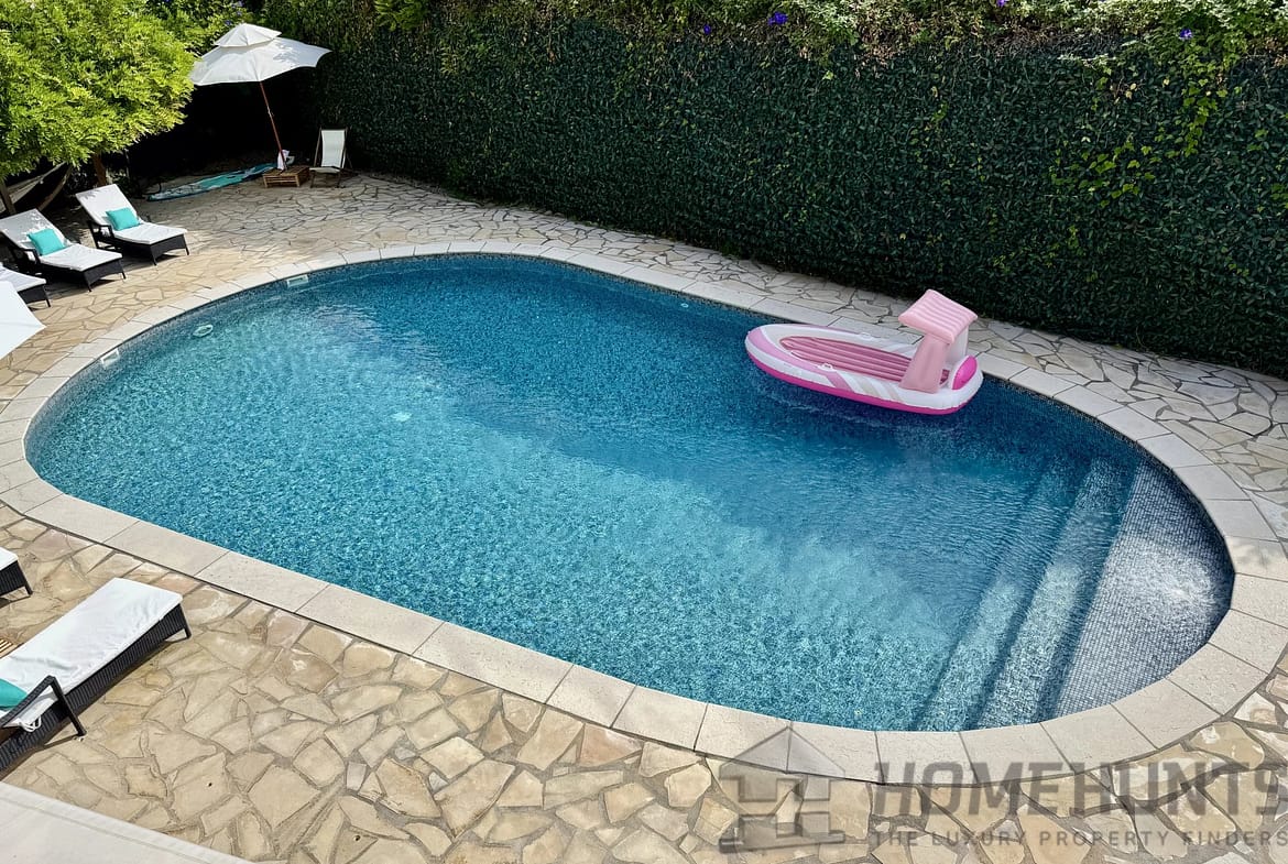 Just steps from the beaches, Hotel Belles-Rives, and close to the legendary Cap-Eden-Roc, the villa enjoys an ideal location, 25 minutes from Cannes and 30 minutes from Nice Airport.
