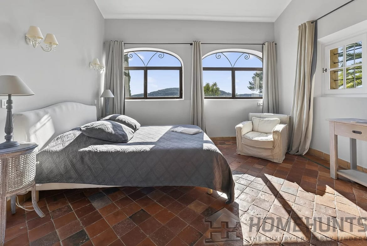 The outdoor areas include an 11 × 5 m saltwater infinity pool with unobstructed views of the valley. The fully enclosed landscaped garden is planted with 49 olive trees and 25 cypress trees, and benefits from irrigation supplied by agricultural water. A restored windmill dating from 1550 adds unique character to the property.
