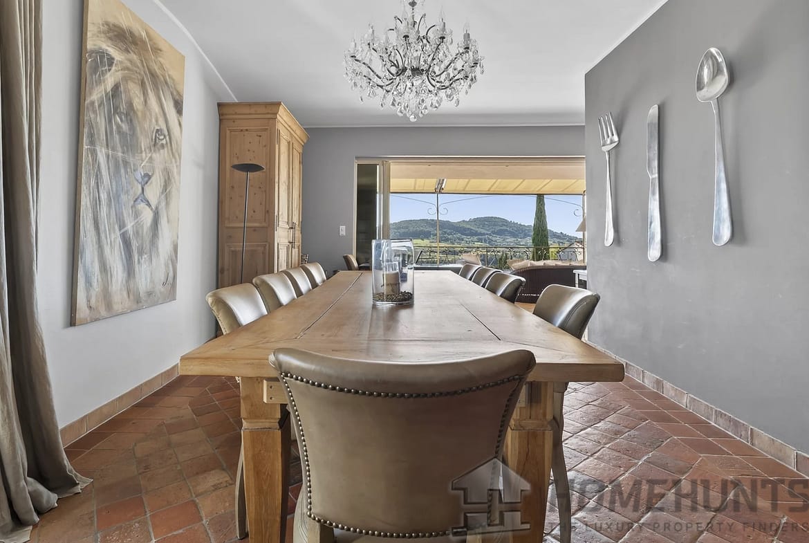 Located on the heights of La Cadiere-d’Azur, property offering approximately 560 m2 of living space on 6,882 m2 of landscaped grounds, in a dominant position with 360 degree panoramic views over the surrounding hills, vineyards, and the Sainte-Baume mountain range.
