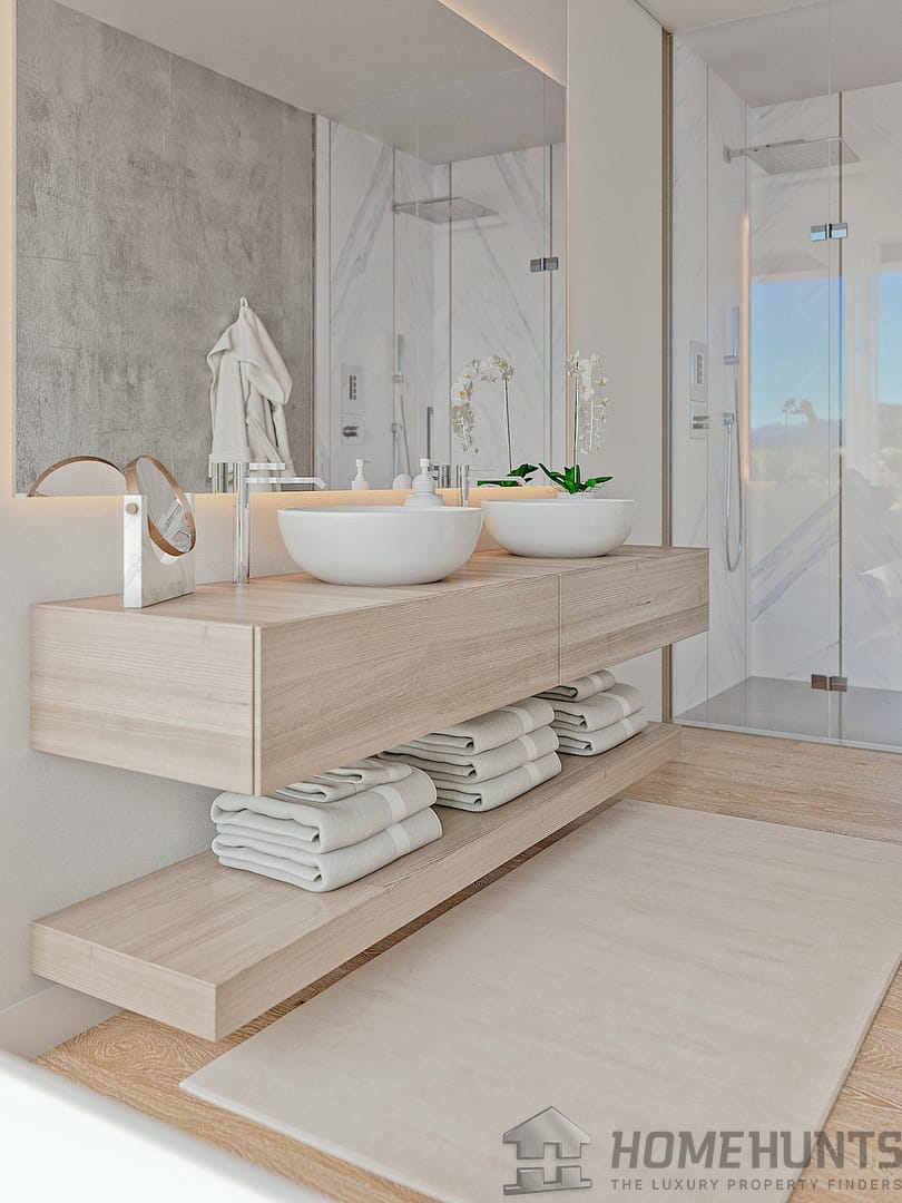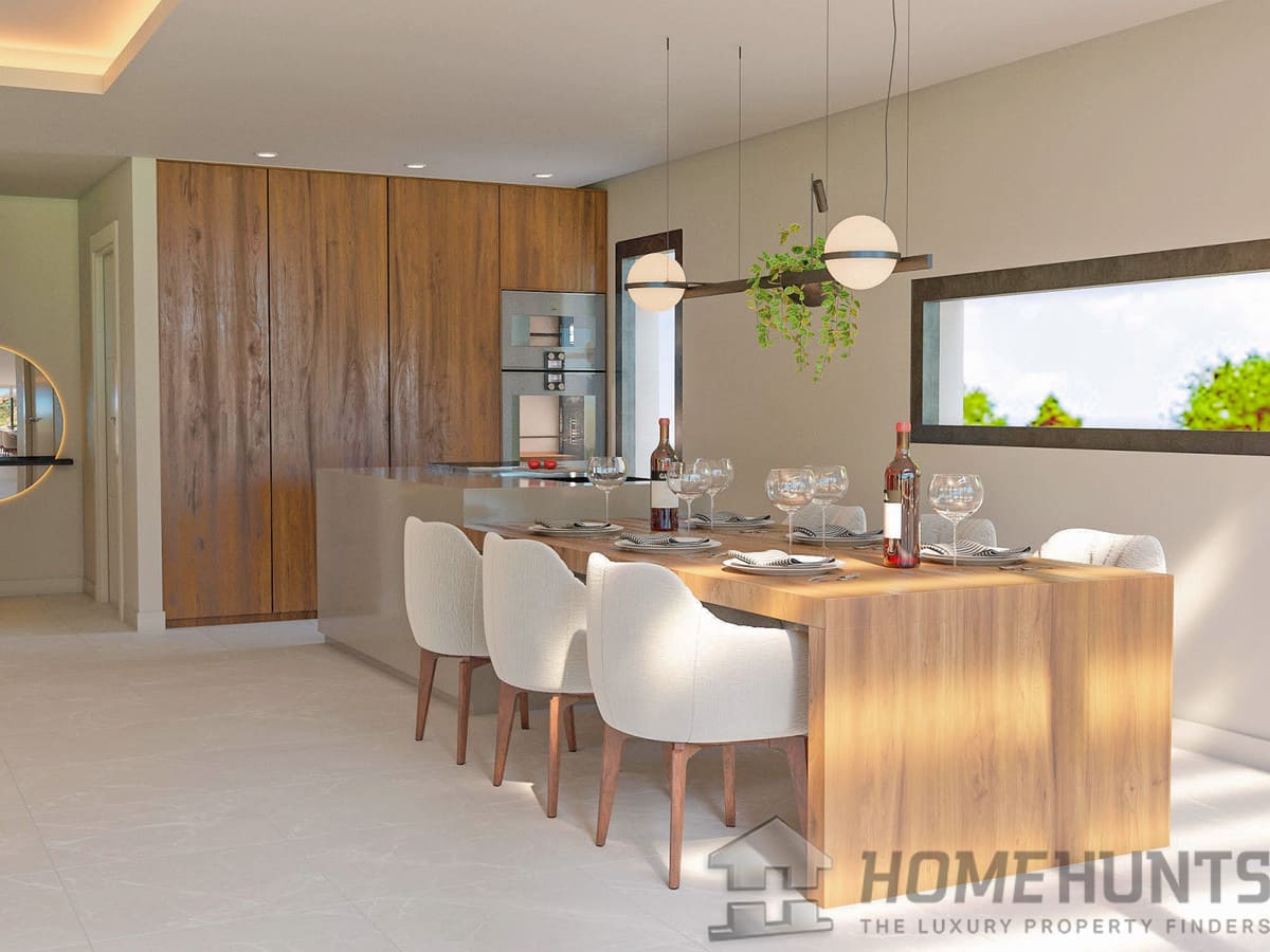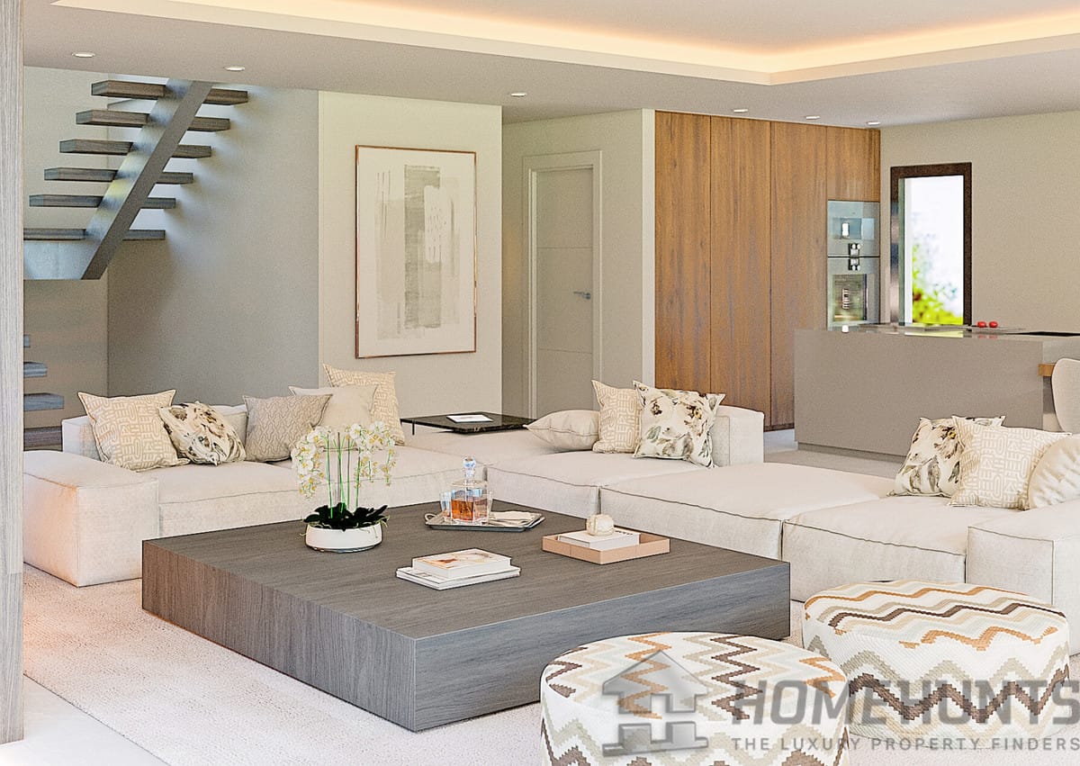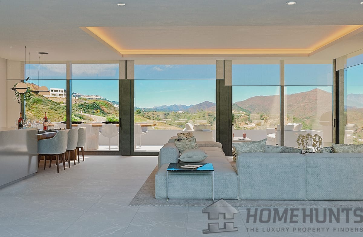 The large open plan spaces create a comfortable and tranquil interior living space. Floor to ceiling windows open onto large shady terraces to enjoy the outdoor life of the Costa del Sol. The stylish fitted kitchen is the perfect place to enjoy cosy family meals or entertain friends.