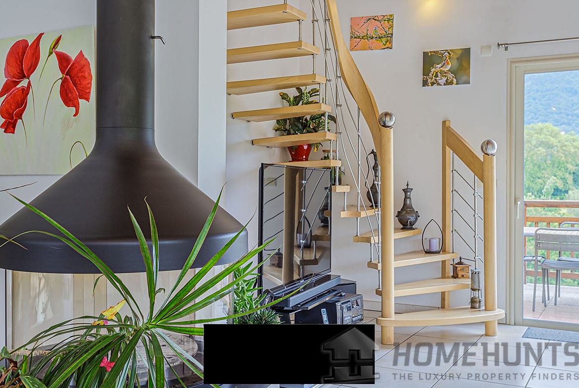 It is in a small quiet hamlet near Montmelian that this architect-designed house from 2009 is located, developing 368 m2 of living space.