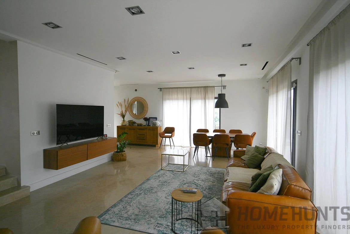 This particular modern villa is made up of a spacious living – room, opening out onto spacious terrace, fitted kitchen, 4 bedrooms with 3 bathrooms/ shower- rooms, a cinema room.