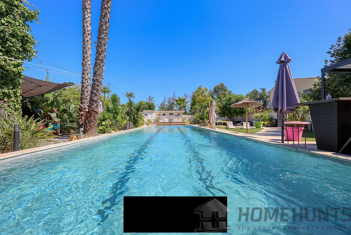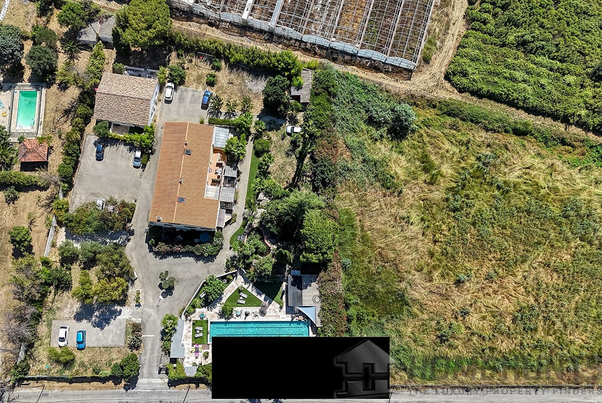 The property is already used for rentals and events, with significant development potential. The exterior offers a privileged living environment, combining nature and modern comfort. A large central swimming pool, surrounded by a solarium, lounge areas, and Mediterranean plants, creates a truly relaxing space.