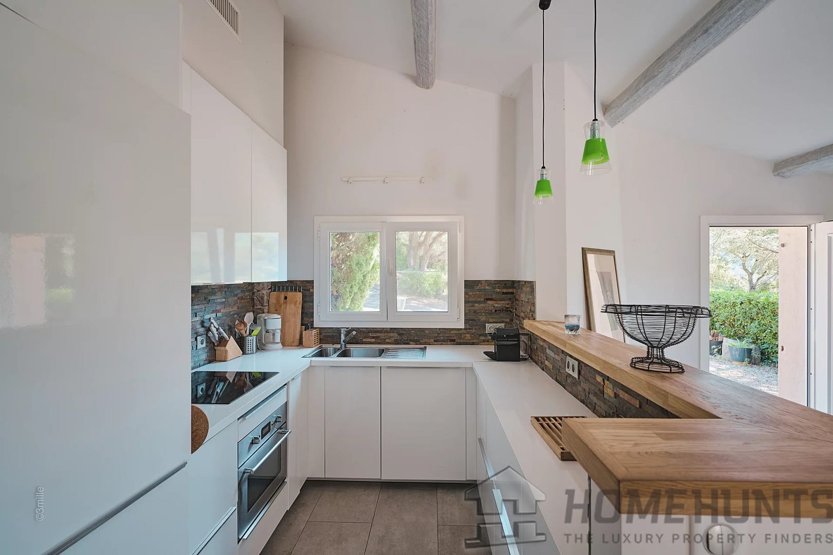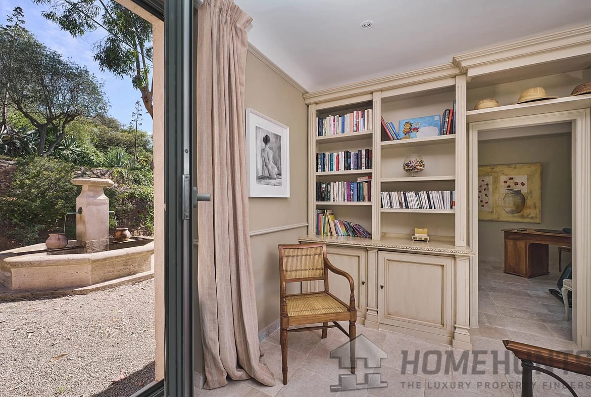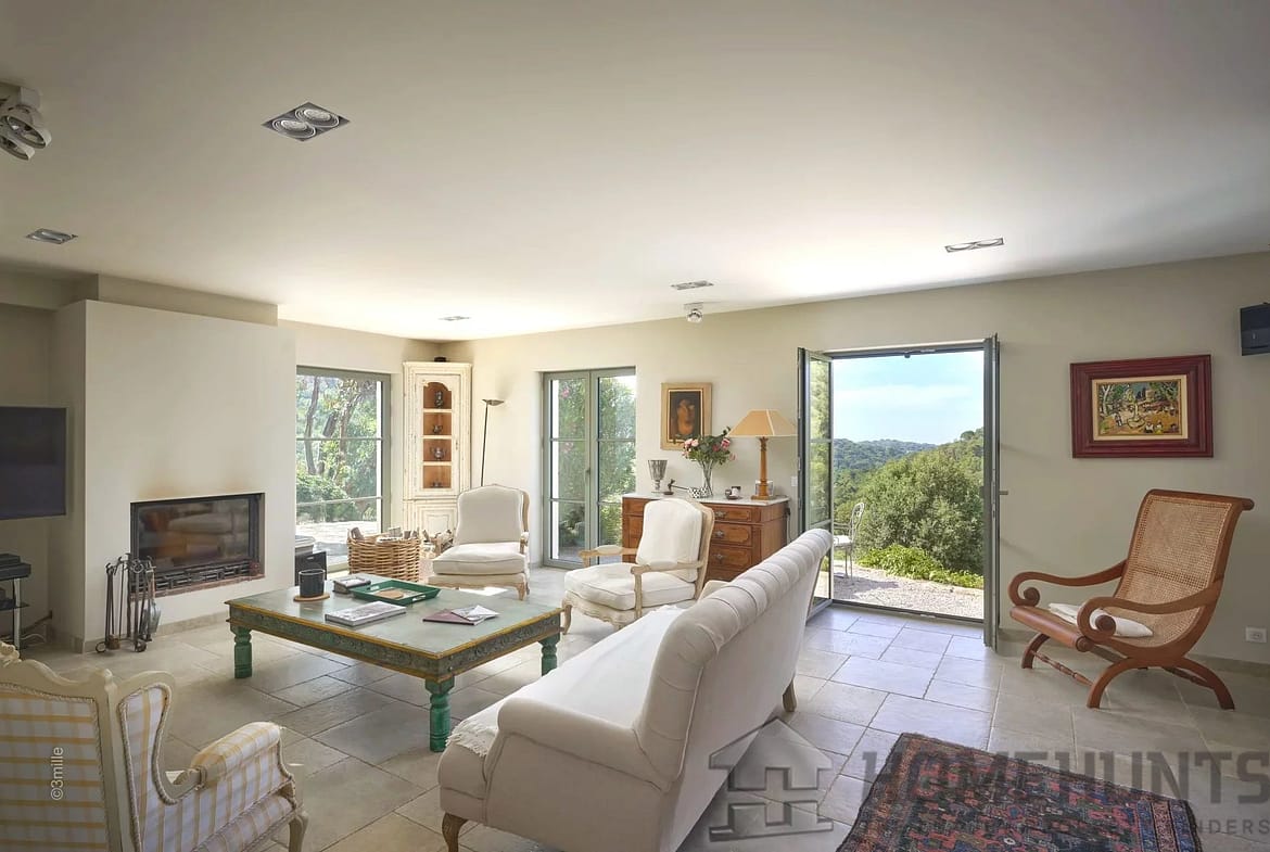 The main house enjoys a living room with fireplace open to a dining room and a fully equipped kitchen with high-end brand, a master bedroom of 60m2 including two offices, a dressing room, a bathroom the whole overlooking a solarium terrace with clear view of the nature of Gigaro as well as a glimpse of the sea