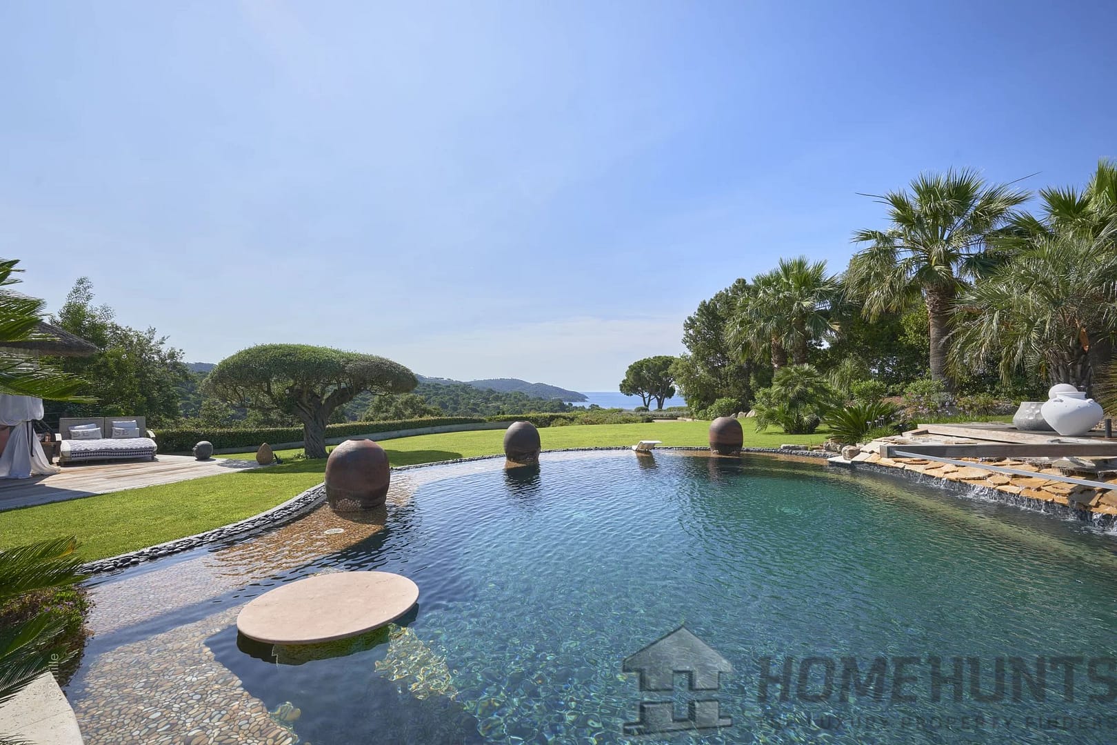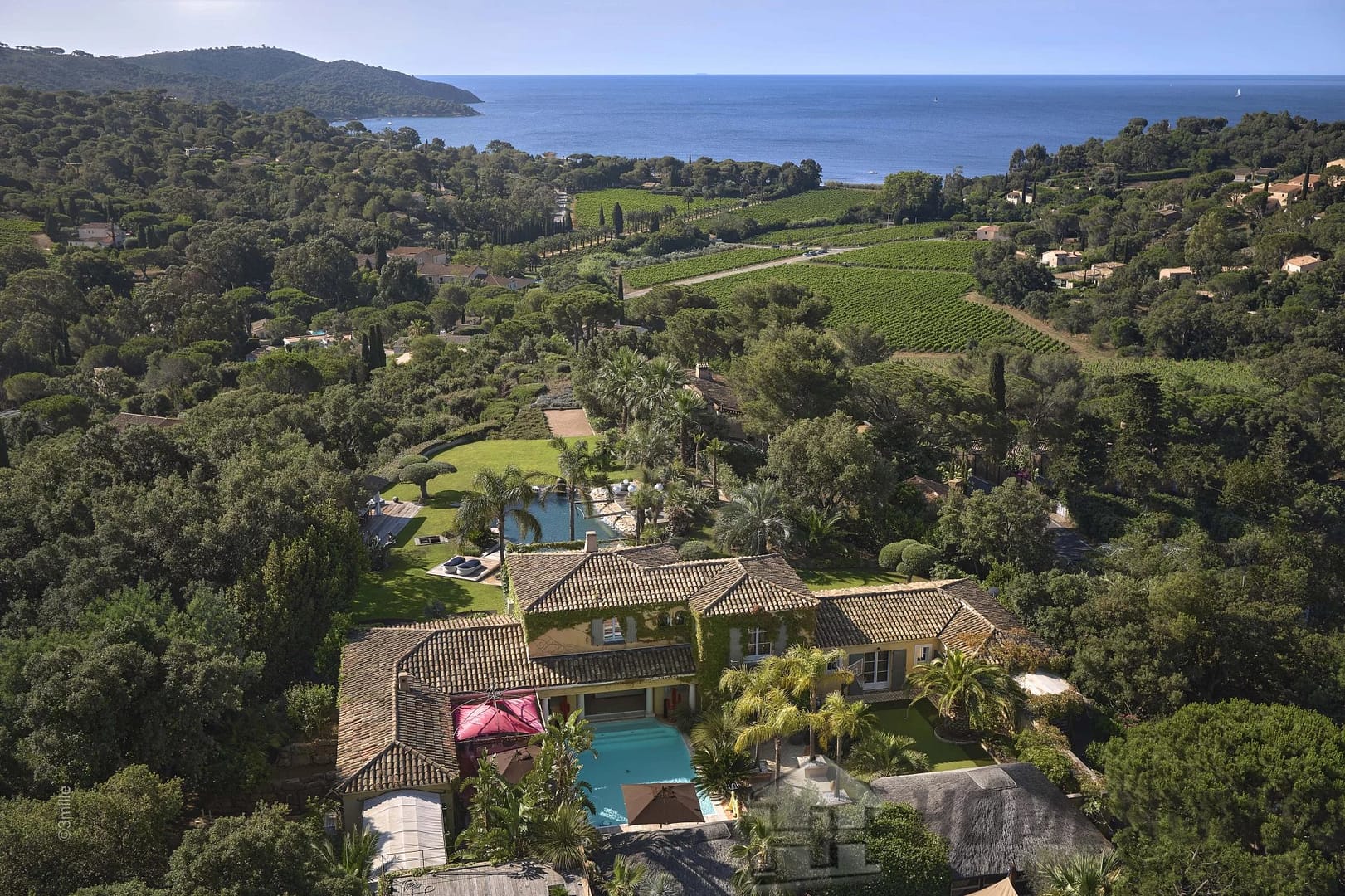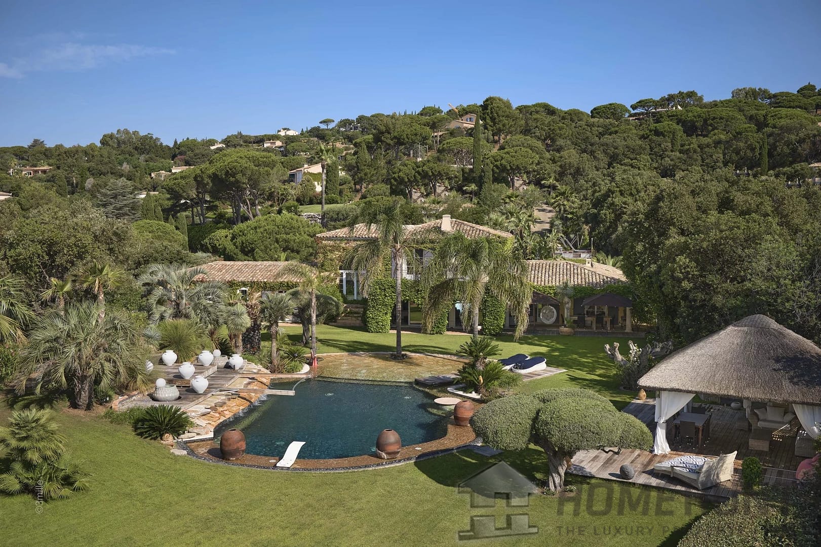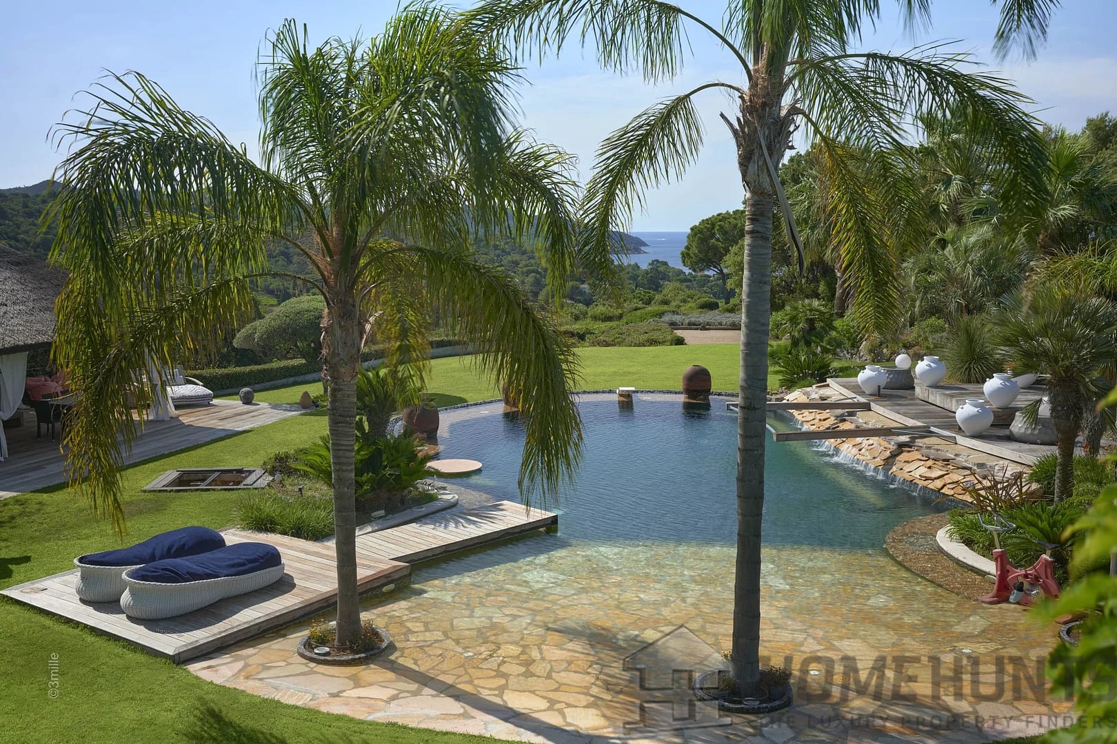 Magnificent palm trees, birds of paradise, olive trees and other species adorning the two swimming pools, adorn this property. A heavenly address, in absolute calm, with its dreamy sea view.
